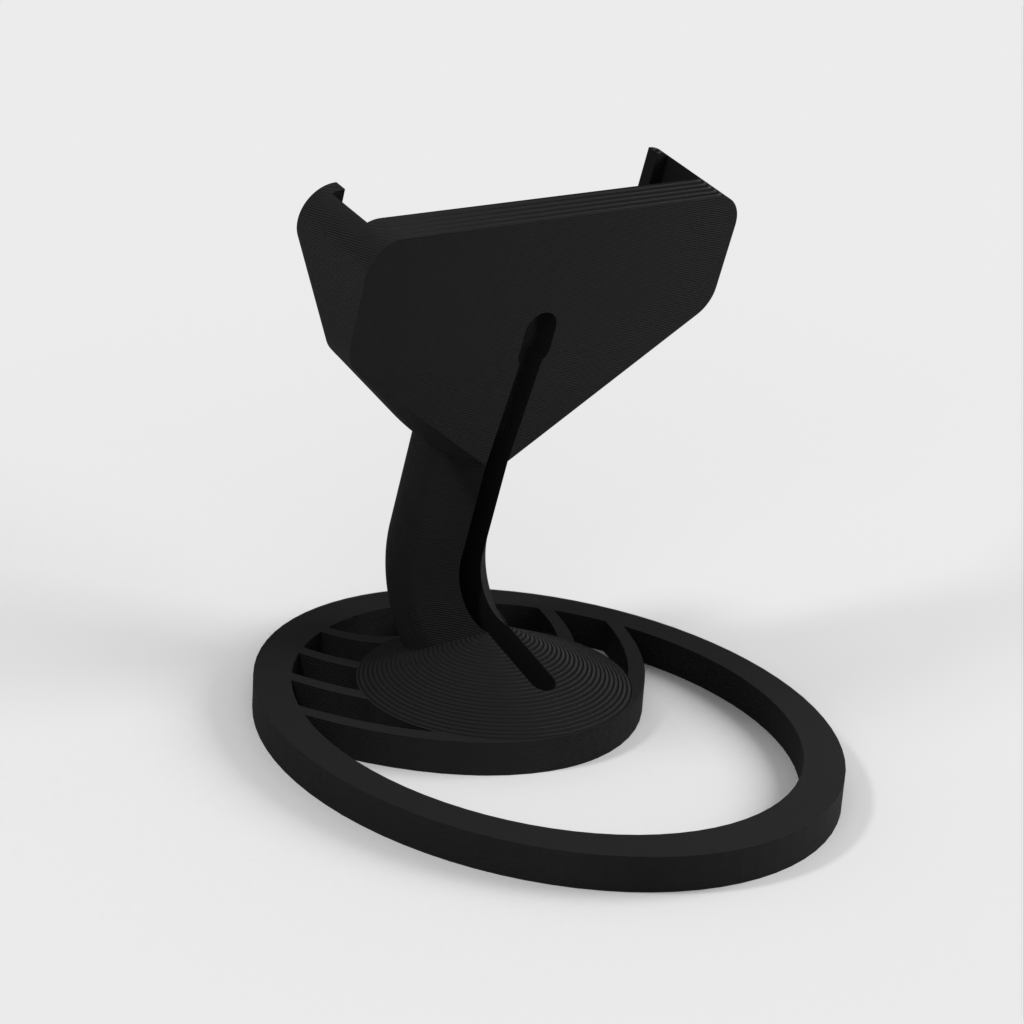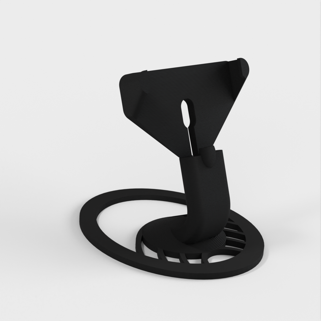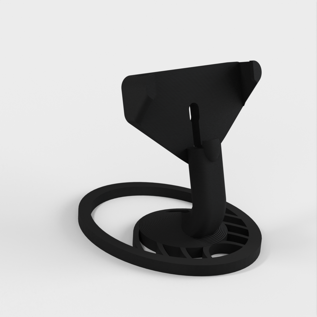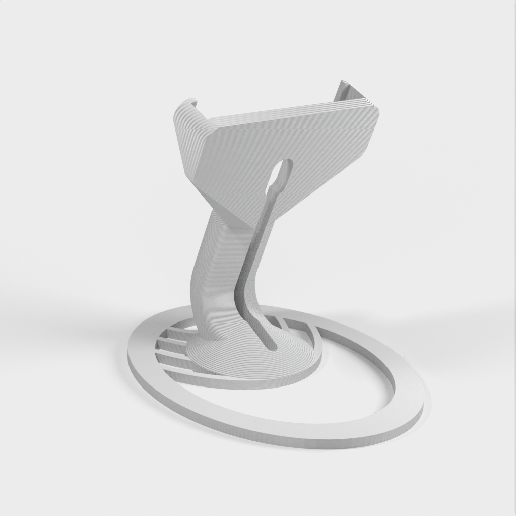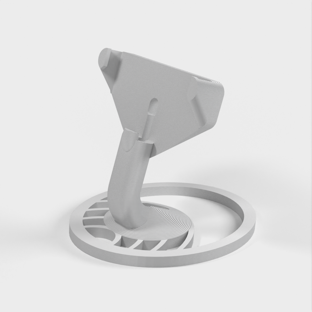 Kaunis jalusta iPhone 5:lle, jossa on tarpeeksi tilaa äänikaapelin liittämiseen.