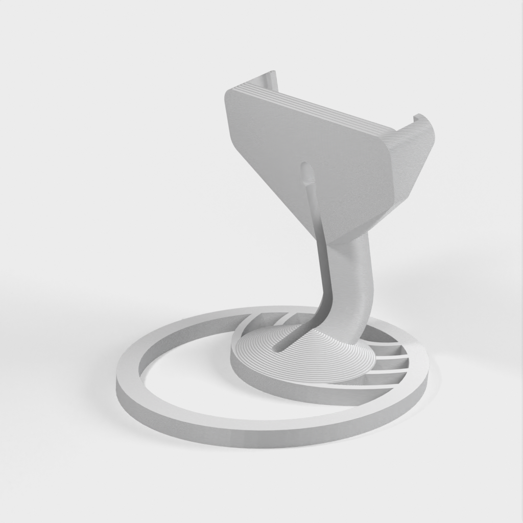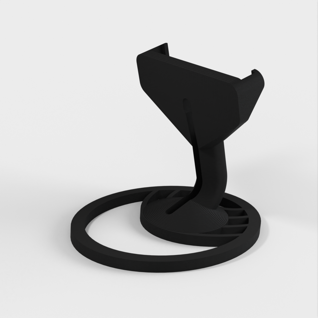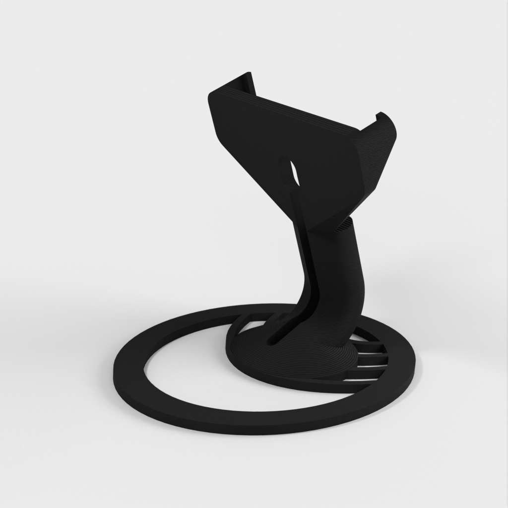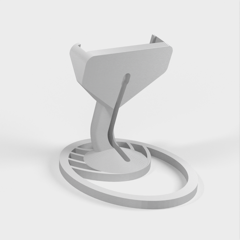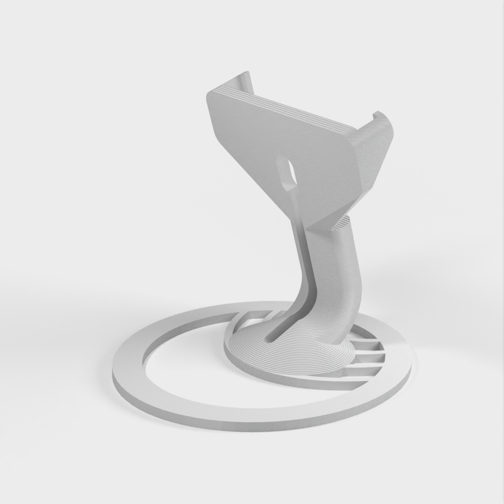 Kaunis jalusta iPhone 5:lle, jossa on tarpeeksi tilaa äänikaapelin liittämiseen.
