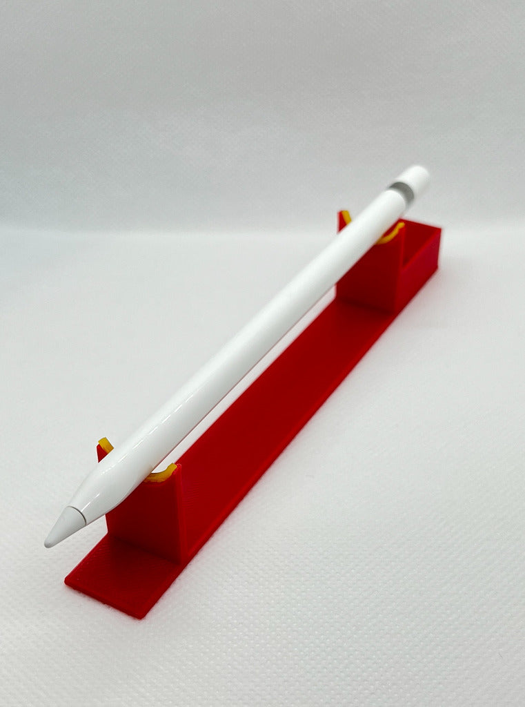 Tämä on kynäteline Applen 1. sukupolven Apple-kynille, joita ei voi kiinnittää Apple-laitteeseen. Pieni säiliö on sitä varten, että voit laittaa kynäkapselin siihen latauksen aikana, jotta et hukkaa sitä.