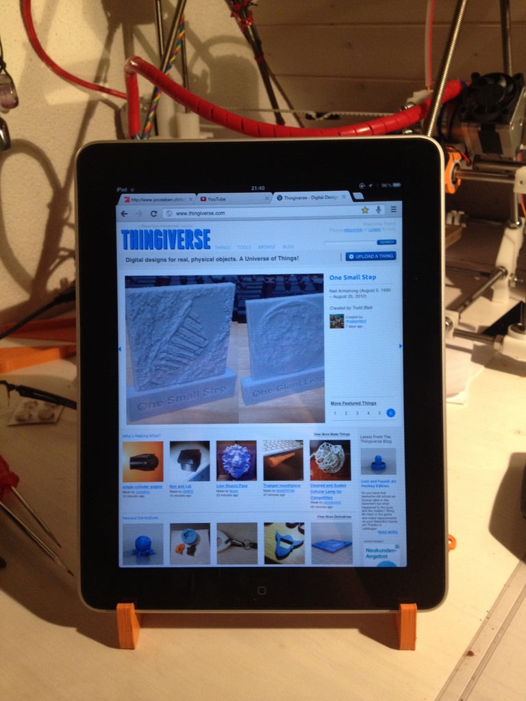 Tämä on helposti tulostettava ja kompakti iPad-teline. Jalusta on suunniteltu niin, että se on helppo purkaa, jolloin voit säästää tilaa. Tulosta vain kaksi sivua ja palkki, paina ne yhteen ja sinulla on valmis jalusta!