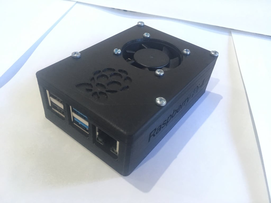 Tämä Raspberry Pi 4 -kotelo sisältää 40 mm:n tuulettimen. Se on suunniteltu erityisesti käytettäväksi Raspberry Pi 4:n kanssa, joka kuluttaa enemmän virtaa ja tuottaa enemmän lämpöä kuin aiemmat mallit. Jäähdytystuuletin ja ilmanvaihto varmistavat, ettei laite ylikuumene kohtalaisessa työmäärässä. Jäähdytyslevyä voi käyttää, mutta sen tulisi olla enintään 5 mm korkea.