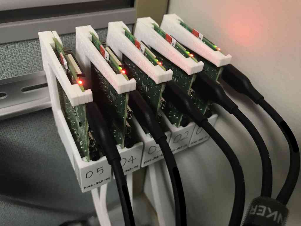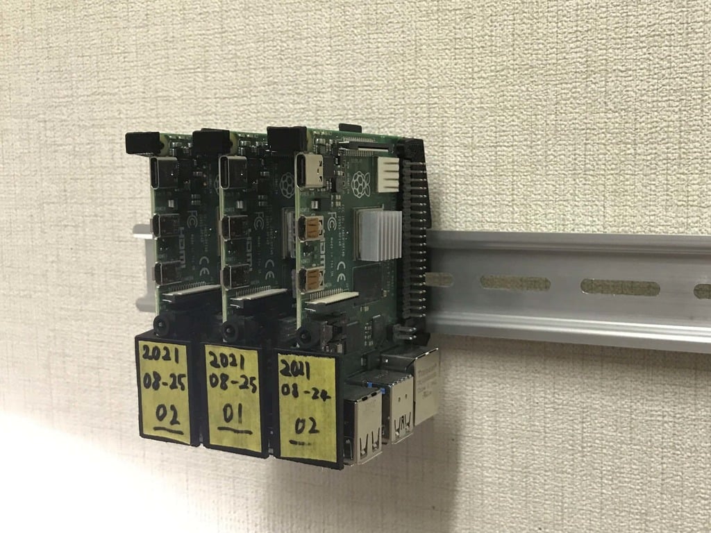 Kiinnike, joka koostuu yksinomaan 3D-tulostetuista osista, varmistaa laitteesi kevyen mutta tukevan asennuksen. Tämä rakenne edistää organisoitua ja tilaa säästävää asennusta, mikä on ihanteellista, kun haluat integroida Raspberry Pi:n olemassa oleviin DIN-kiskoilla varustettuihin järjestelmiin.