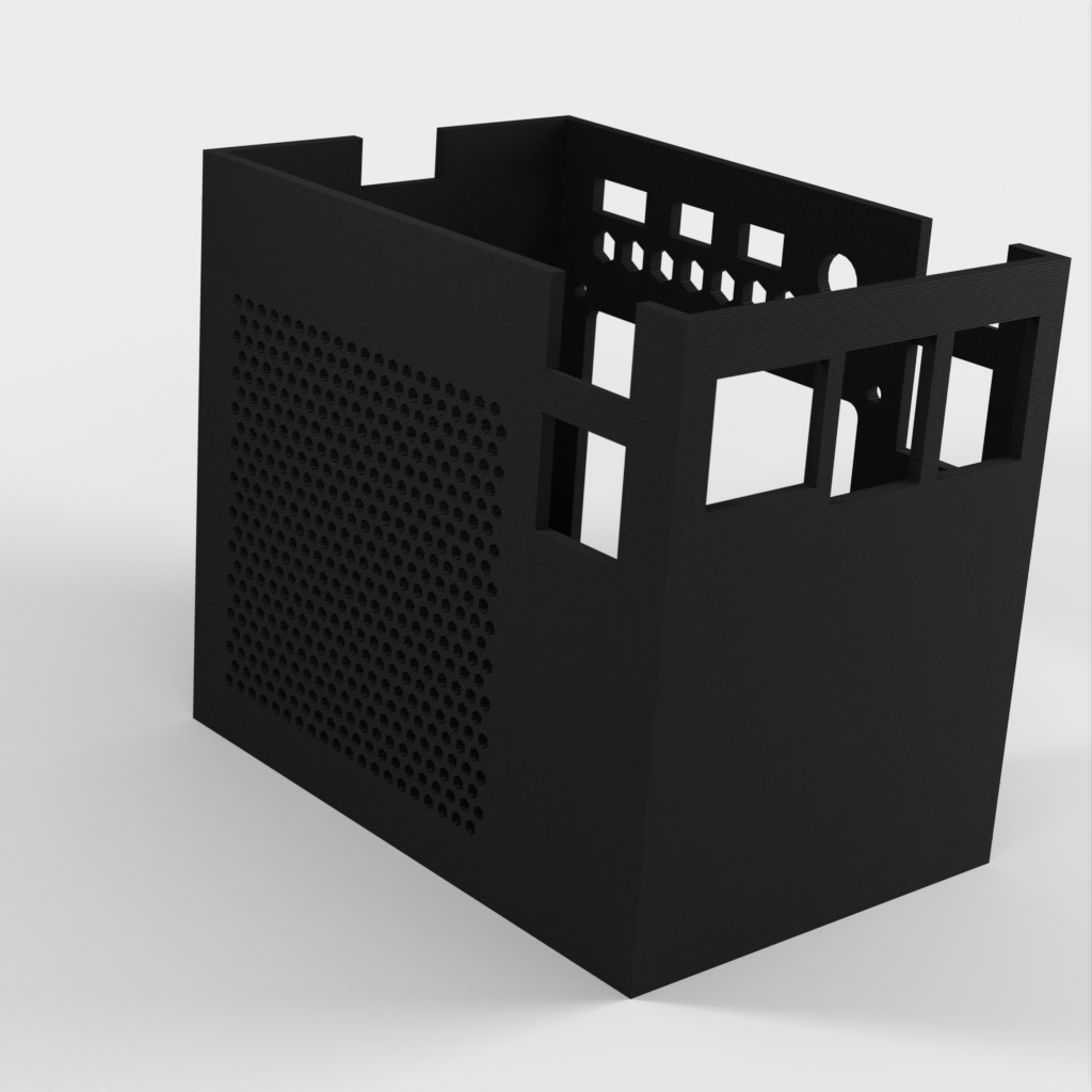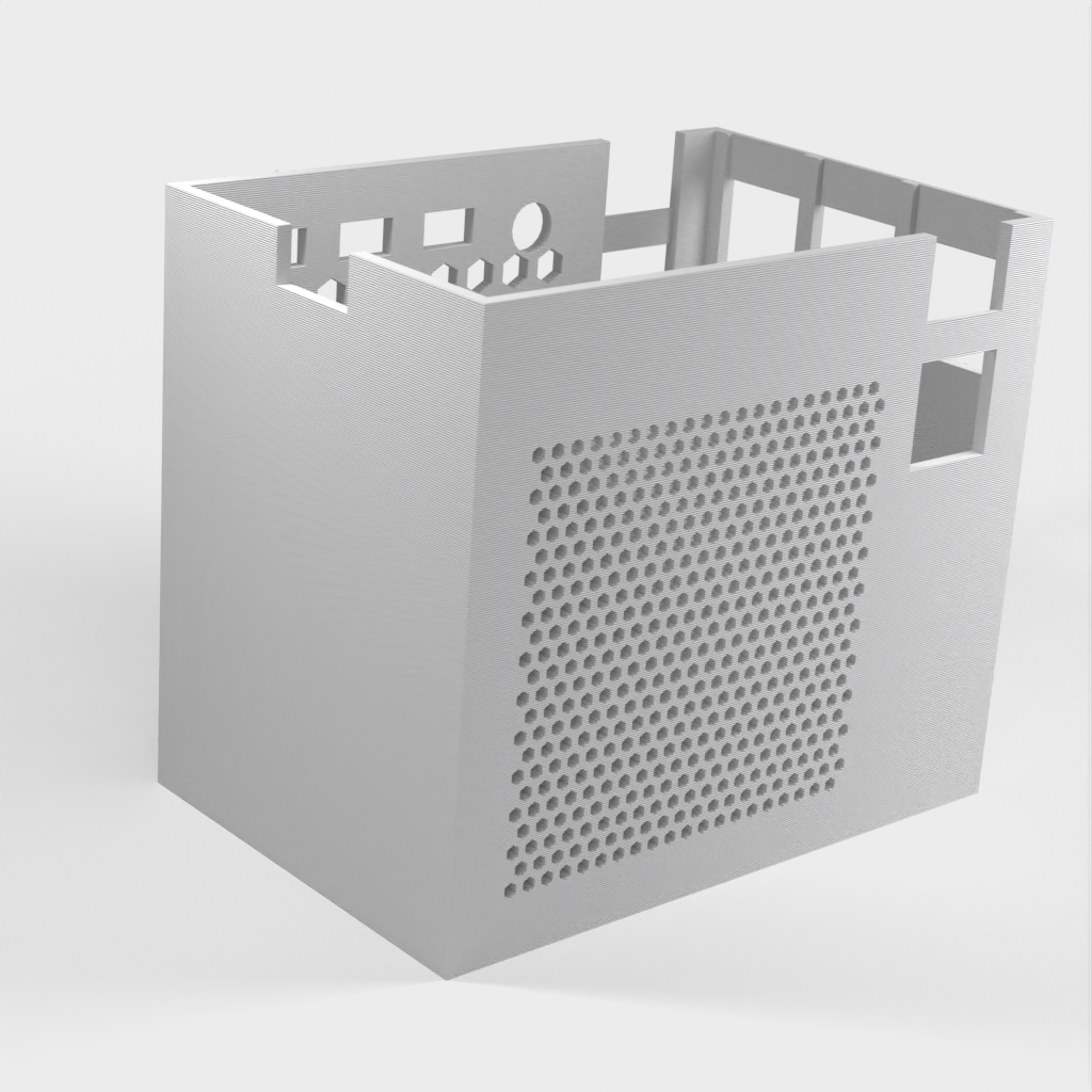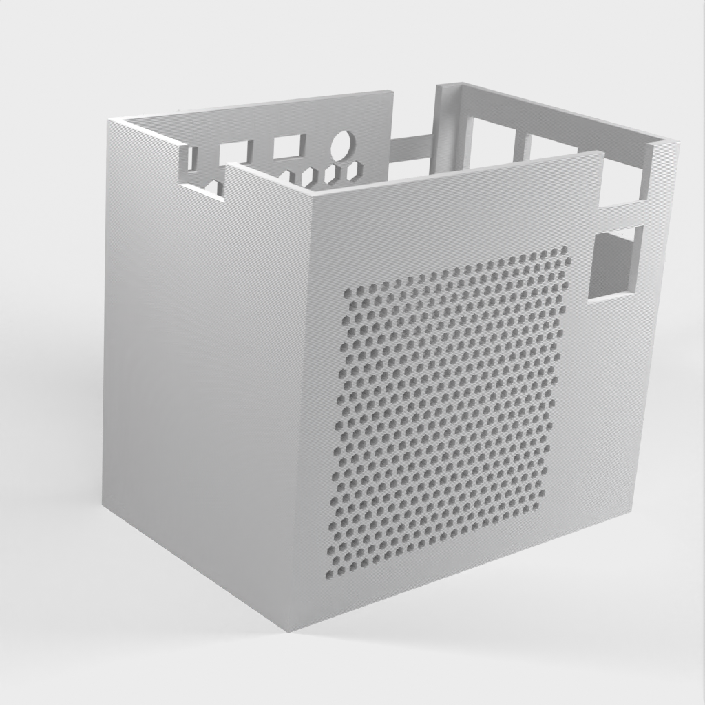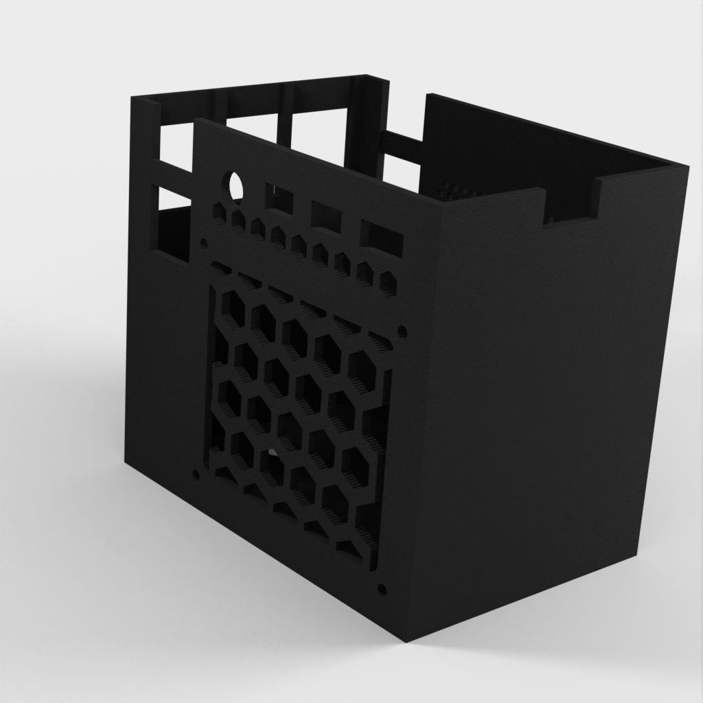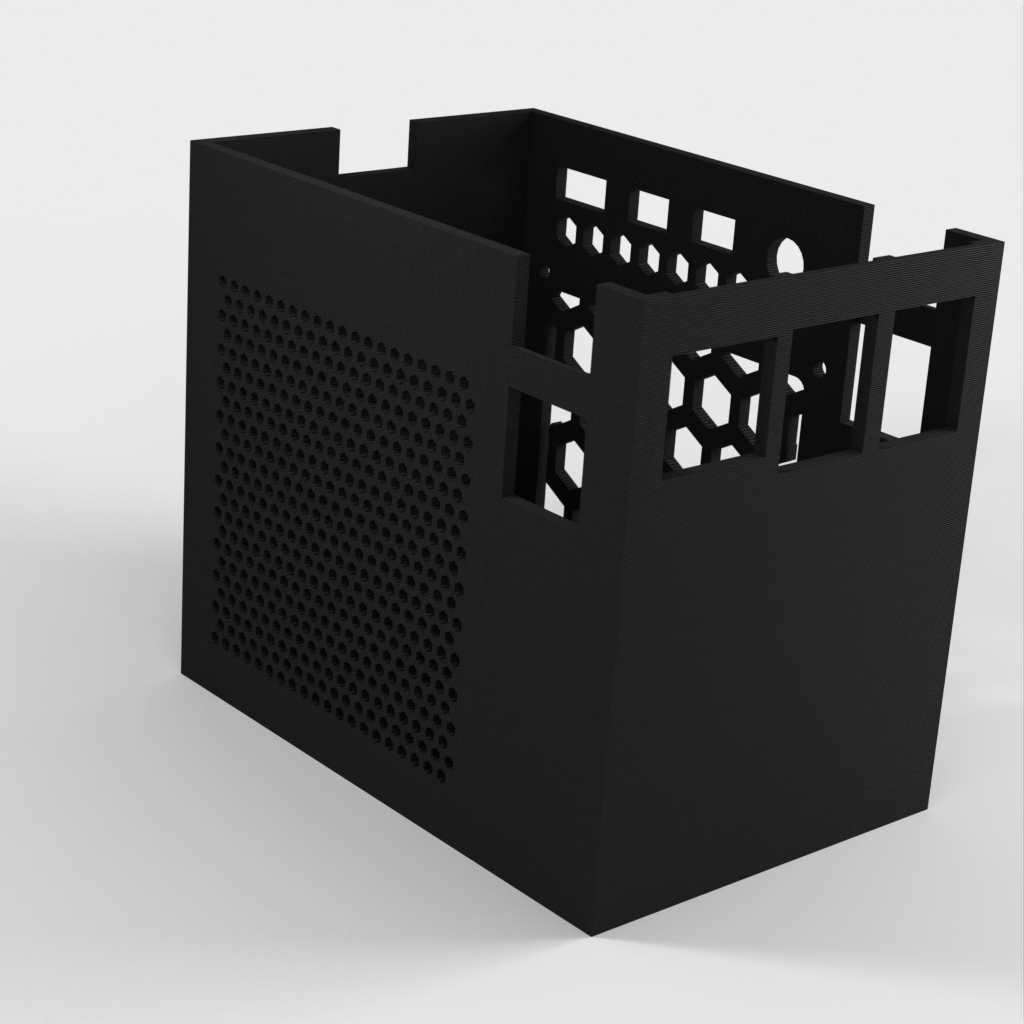 Tämä on minimalistinen kotelo Raspberry Pi 4:lle, joka sopii Ice Tower -jäähdyttimeen. Kotelon yläosan muotoilussa on takana suurempia kuusikulmioita, mikä helpottaa tulostamista. Tulostamisen jälkeen nämä kuusikulmiot voidaan poistaa, jotta kotelo saa kauniimman ilmeen Ice Tower -jäähdyttimen mukana tulevan akryylilevyn avulla, joka on asennettu kotelon kylkeen. Kotelon klipsit ja alaosa on säädetty sopimaan paremmin yhteen ja tukemaan usean halkaisijan kumijalkoja.