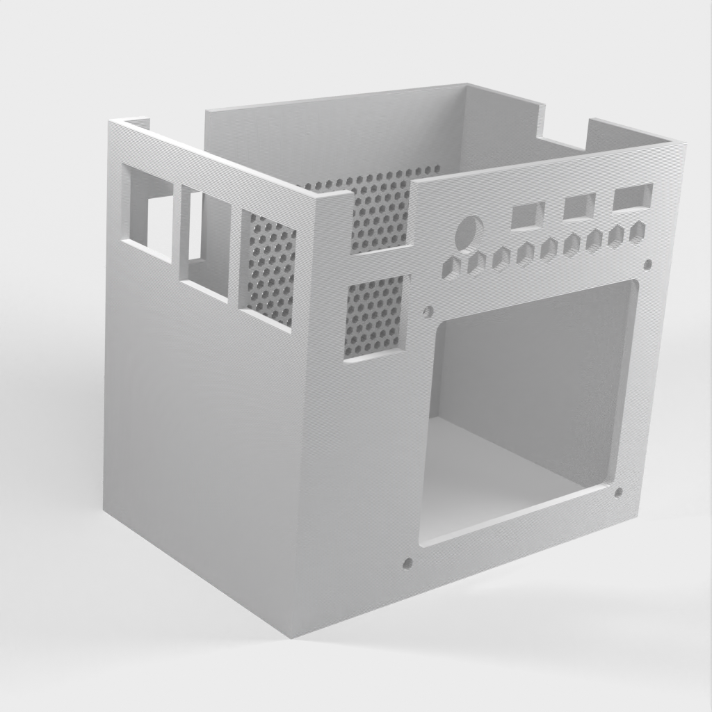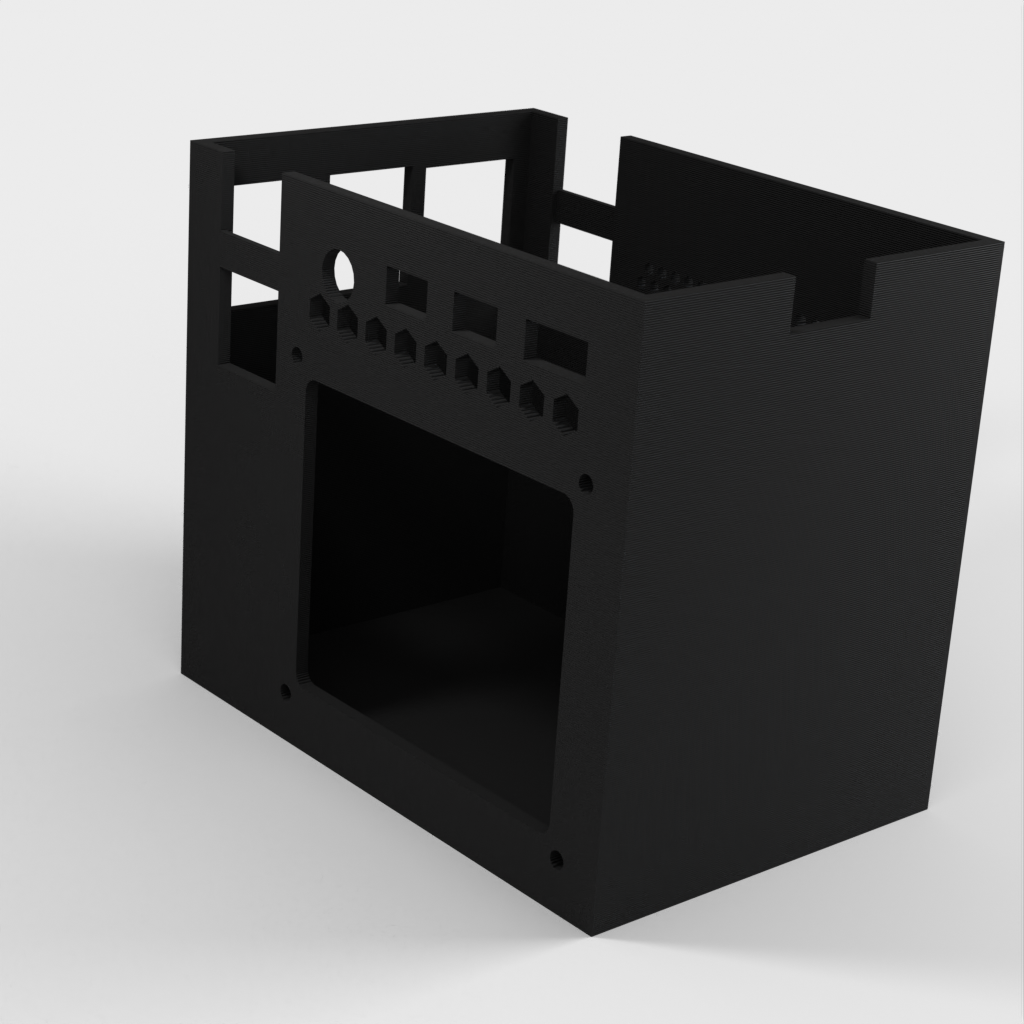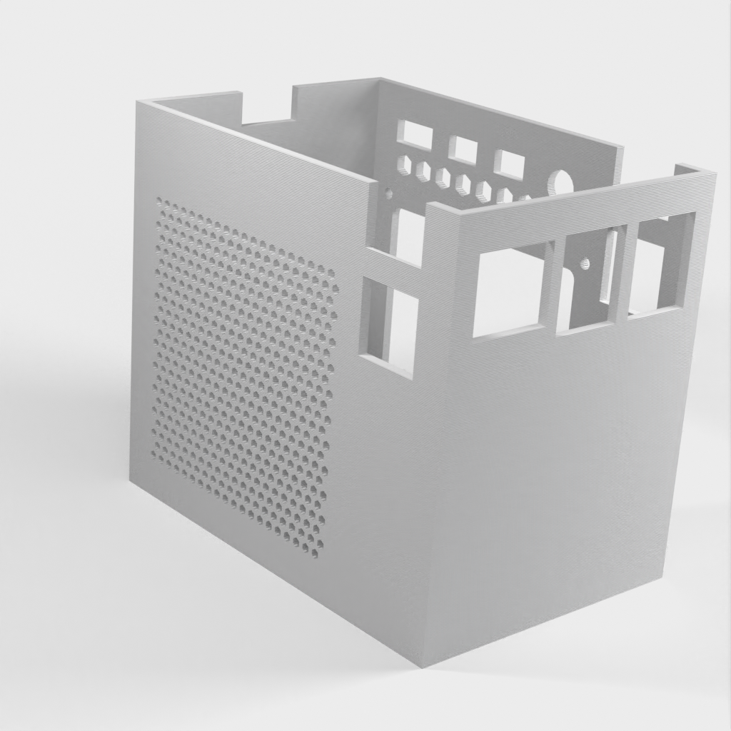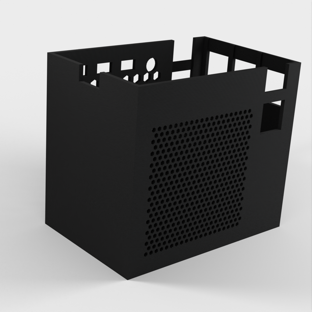 Tämä on minimalistinen kotelo Raspberry Pi 4:lle, joka sopii Ice Tower -jäähdyttimeen. Kotelon yläosan muotoilussa on takana suurempia kuusikulmioita, mikä helpottaa tulostamista. Tulostamisen jälkeen nämä kuusikulmiot voidaan poistaa, jotta kotelo saa kauniimman ilmeen Ice Tower -jäähdyttimen mukana tulevan akryylilevyn avulla, joka on asennettu kotelon kylkeen. Kotelon klipsit ja alaosa on säädetty sopimaan paremmin yhteen ja tukemaan usean halkaisijan kumijalkoja.