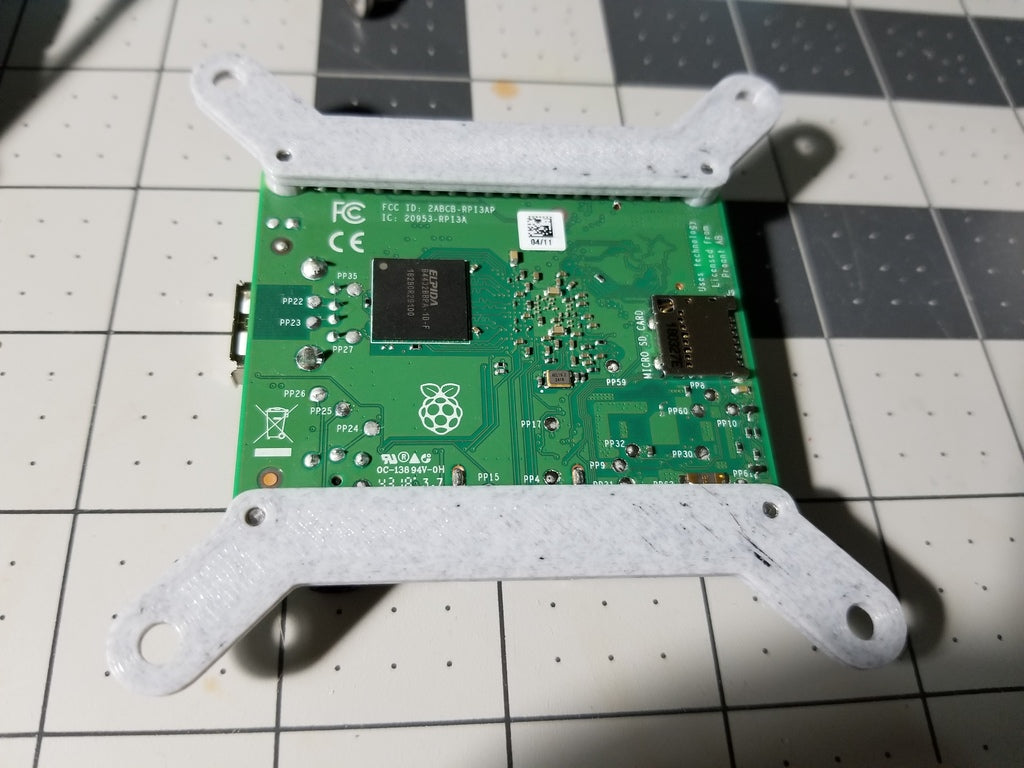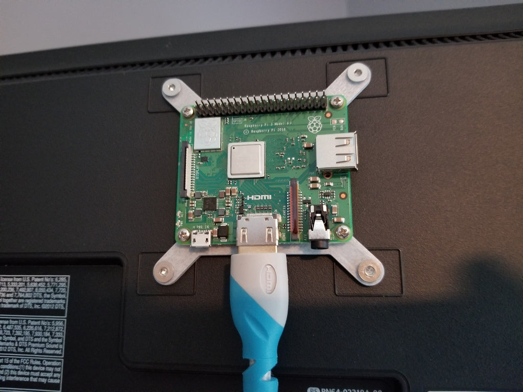 Nämä ovat yksinkertaisia kiinnikkeitä Raspberry Pi -levyn kiinnittämiseen televisioon tai näyttöön, jossa on 75mm x 75mm VESA-kiinnitysreiät. Ne sopivat kaikille täysikokoisille Pi:ille - mallit 4, 3B, 3B+, 3A+ jne. paitsi Pi Zero.