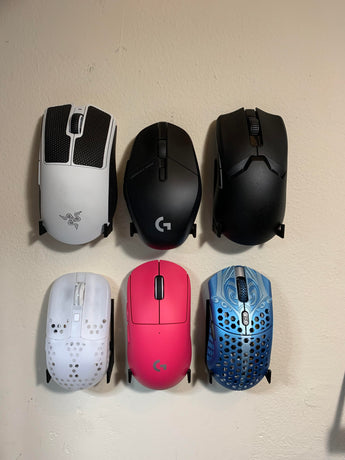 Tämä minimalistinen seinäkiinnitteinen teline on suunniteltu tarjoamaan käytännöllinen ja tilaa säästävä ratkaisu pelihiiren säilytykseen. Se auttaa poistamaan sotkua työpöydältäsi samalla kun hiiri pysyy helposti saatavilla, kun haluat vaihtaa eri mallien välillä. Teline on riittävän tukeva varmistamaan, että hiiri pysyy turvallisesti paikallaan eikä putoa käytön aikana.