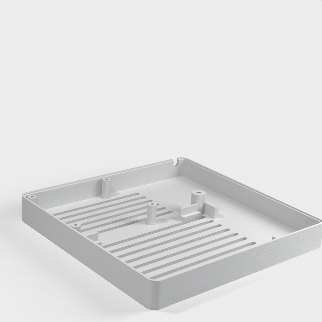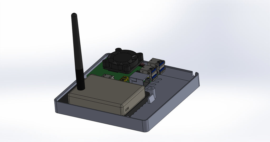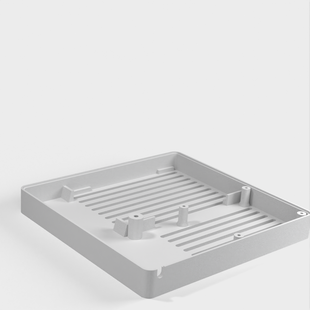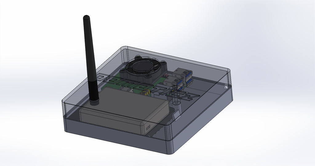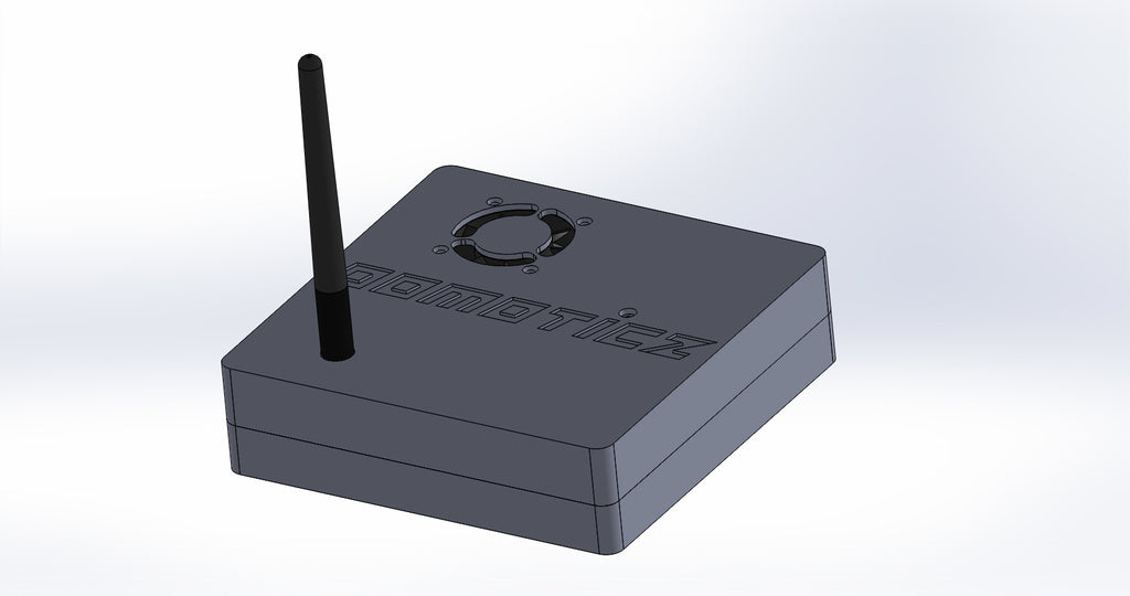 Henkilökohtainen laatikko Domoticzille, joka sisältää Raspberry Pi, Pi Drive, RFX.com, Aeon stick z wave. Yläkanteen on asennettava 40 mm tuuletin. Muista lisätä laatikon alle tyynyjä optimaalisen jäähdytyksen varmistamiseksi. Muutokset on tehty teknisten piirustusten mukaan, mukaan lukien Raspberryn reikien sijainnin muuttaminen ja Raspberry-pöydän korottaminen. Osa yläkannesta on tehty ohuemmaksi, jotta LED-tilaa voidaan tarkastella läpinäkyvän materiaalin läpi.