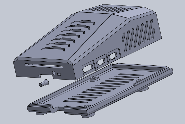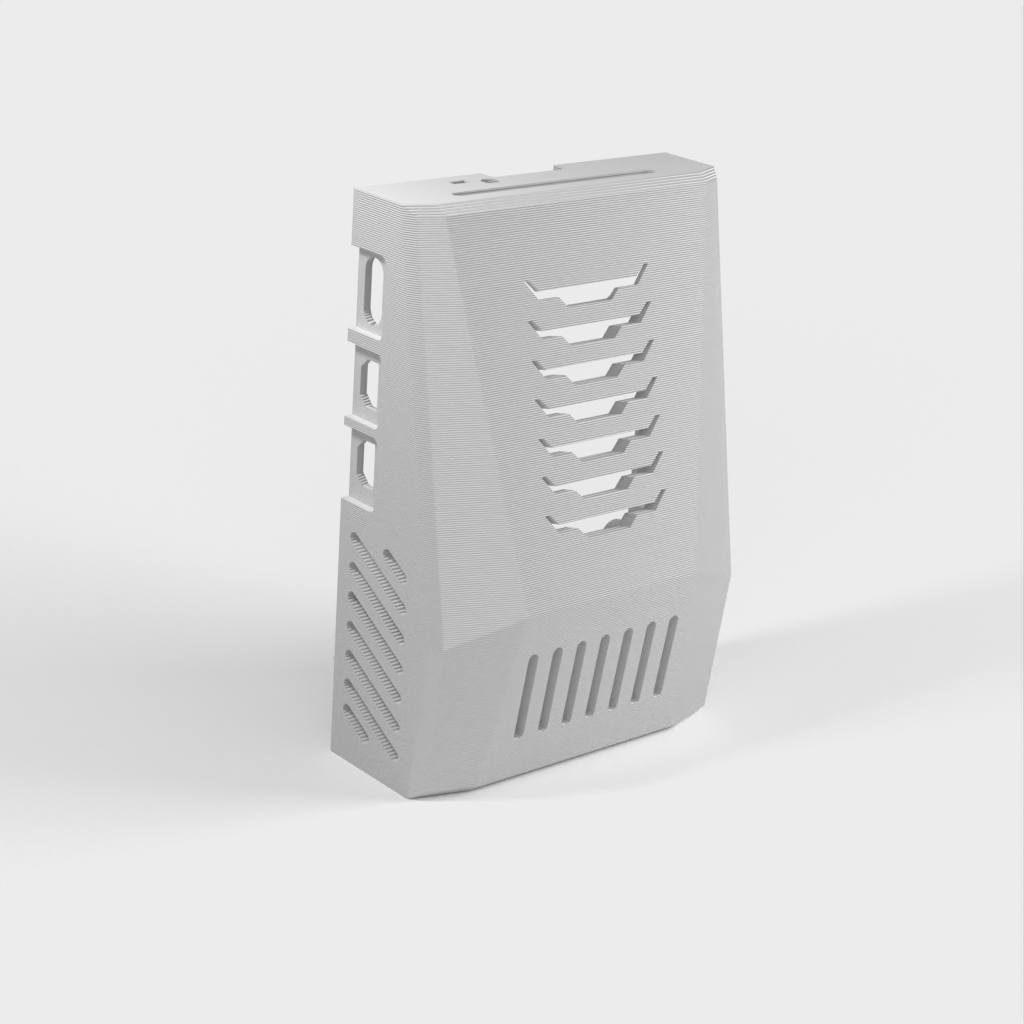Raspberry Pi 5 -kotelo, jossa on ilmanvaihto ja tilaa alkuperäisille lisävarusteille
