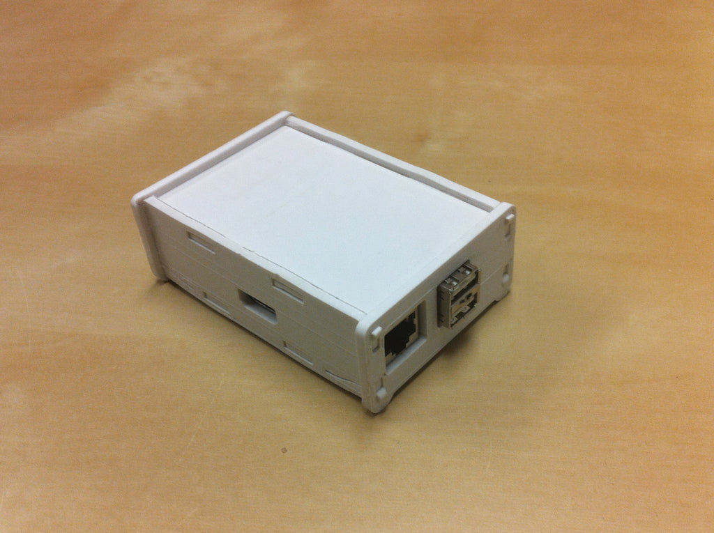 Vadelma Pi -kotelo, joka suojaa ja helpottaa Raspberry Pi:n kuljetusta. Suunnittelu perustuu Adafruitin laserleikattuun malliin ja se pystyy pitämään huolta Pi:stäsi käytön aikana. Replicatorilla tehty teos on paitsi käytännöllinen myös esteettisesti miellyttävä.