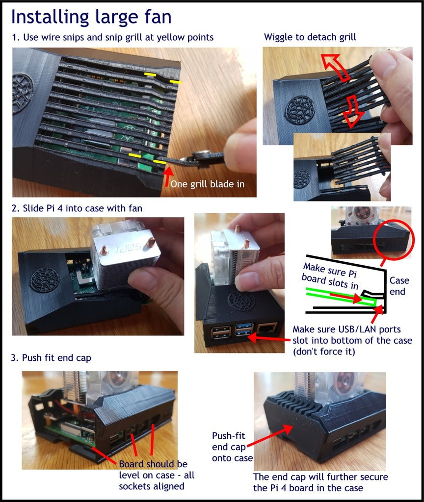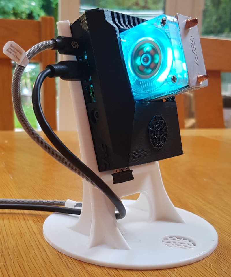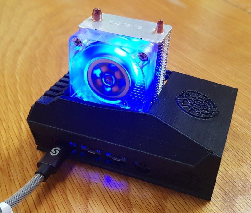 Vadelma Pi 4:n kotelo, joka on suunniteltu 2 Ghz:n ylikellotukseen. Tähän koteloon mahtuu sekä pieni 30 x 30 x 30 x 30 x 7 mm:n (5 voltin) tuuletin että suurempi 'ICE Tower Cooler'. Kotelo voidaan tulostaa 'sellaisenaan' yhdessä pienen tuulettimen pidikkeen päätykannen kanssa. Vaihtoehtoisesti kotelo voidaan helposti muuttaa niin, että siihen mahtuu suurempi jäähdytin.