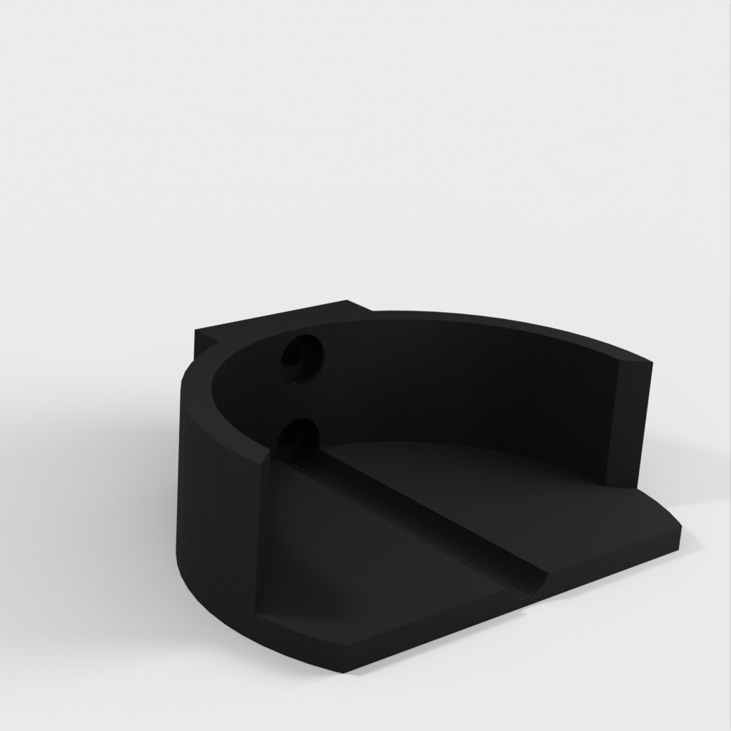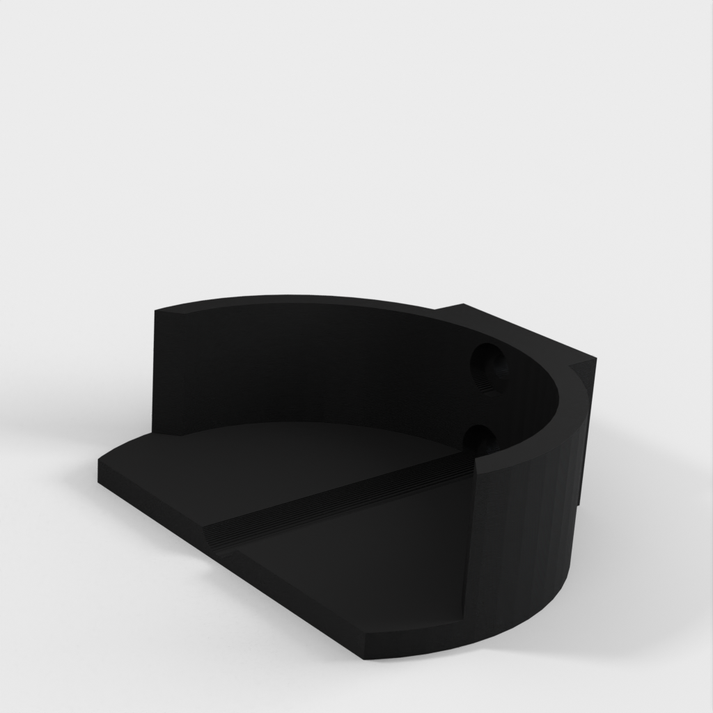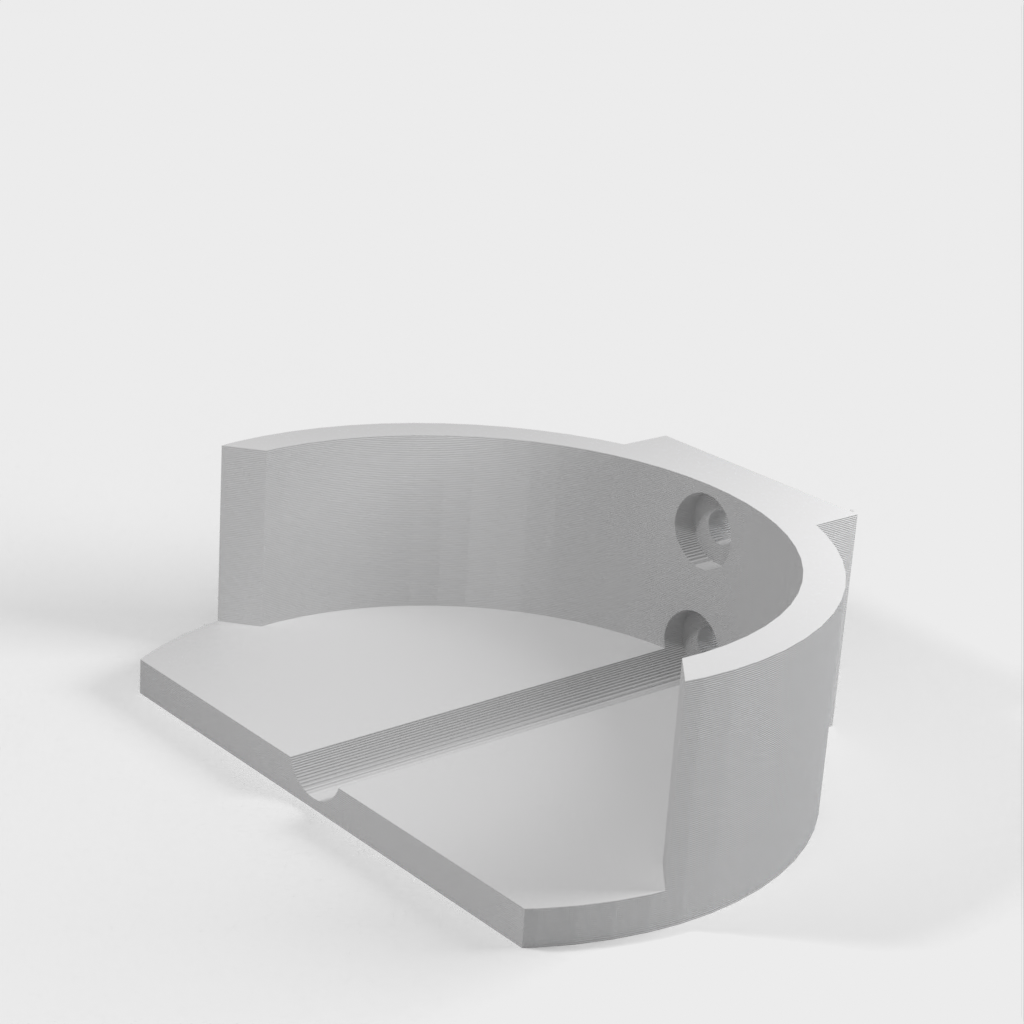 Tämä on yksinkertainen seinäkiinnike First Alert Tundra -suihkupullosammuttimelle. Se ei ole mitään hienoa, mutta se tekee tehtävänsä. Ylempi kiinnike tekee suurimman osan kanisterin paikallaan pitämisestä, kun taas alempi kiinnike toimii enemmänkin paikallaan pitäjänä.