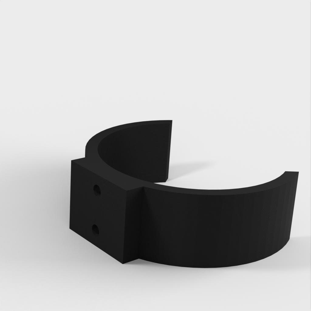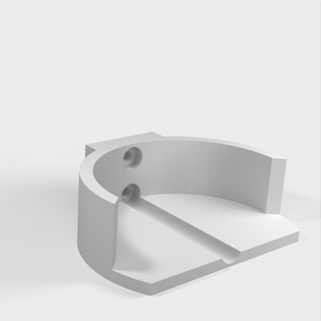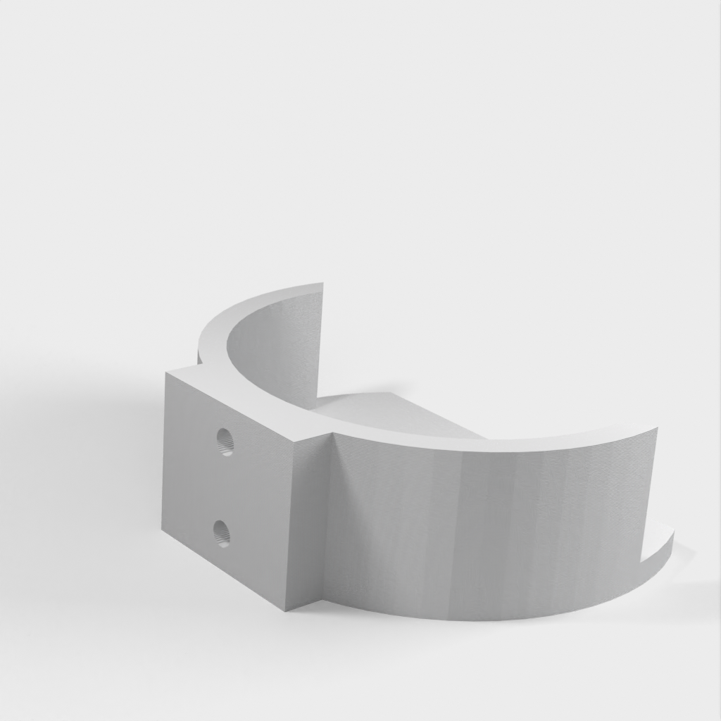 Tämä on yksinkertainen seinäkiinnike First Alert Tundra -suihkupullosammuttimelle. Se ei ole mitään hienoa, mutta se tekee tehtävänsä. Ylempi kiinnike tekee suurimman osan kanisterin paikallaan pitämisestä, kun taas alempi kiinnike toimii enemmänkin paikallaan pitäjänä.