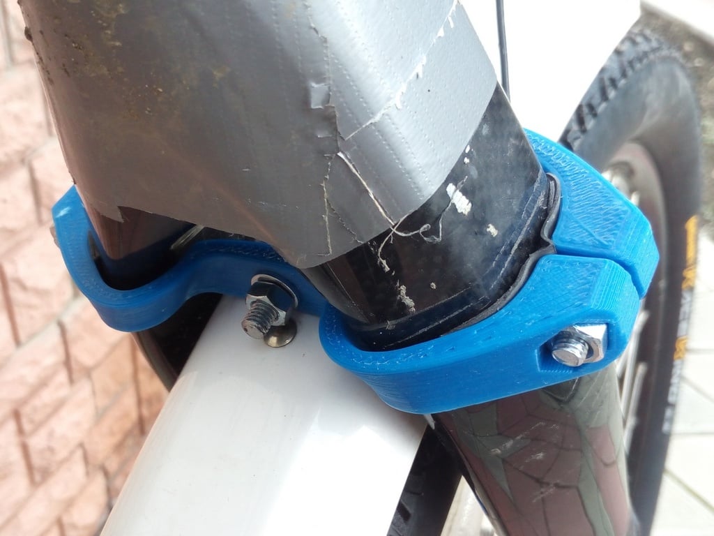 Yksinkertainen ja luotettava lokasuojan pidike täyspitkän lokasuojan asentamiseen 29er MTB -pyörään, jossa on hiilikuituhaarukka. Suunniteltu sopimaan monenlaisiin hiilikuituhaarukoihin ja tarjoamaan vakaan ja tukevan kiinnityksen.
