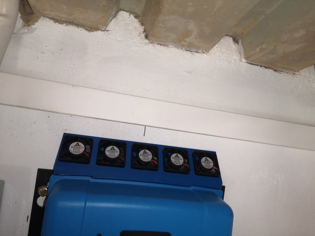 Jäähdytyssuojus Victron 250/100 MPPT:lle, jossa tilaa viidelle 40 mm:n tuulettimelle