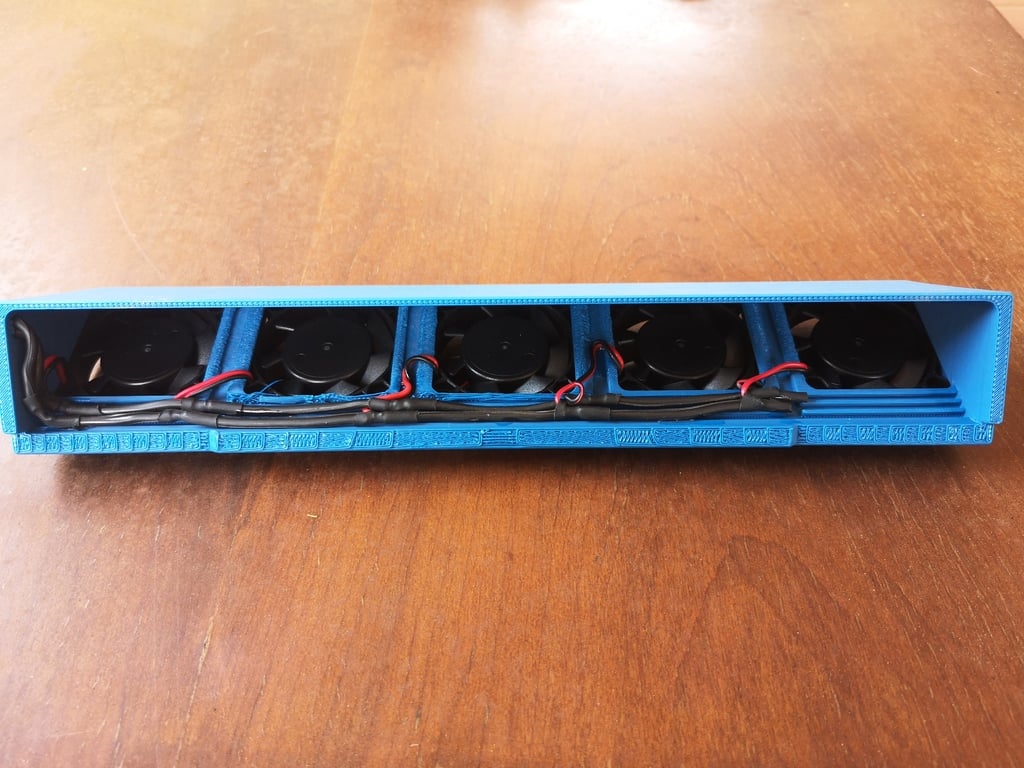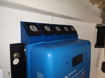Poistoimusuunnitelma, joka on suunniteltu sopimaan 5x 40 mm:n tuulettimelle Victron 250/100 MPPT -laitteeseen. Tämä kupu parantaa merkittävästi jäähdytystä laturin takana olevassa jäähdytyselementissä.