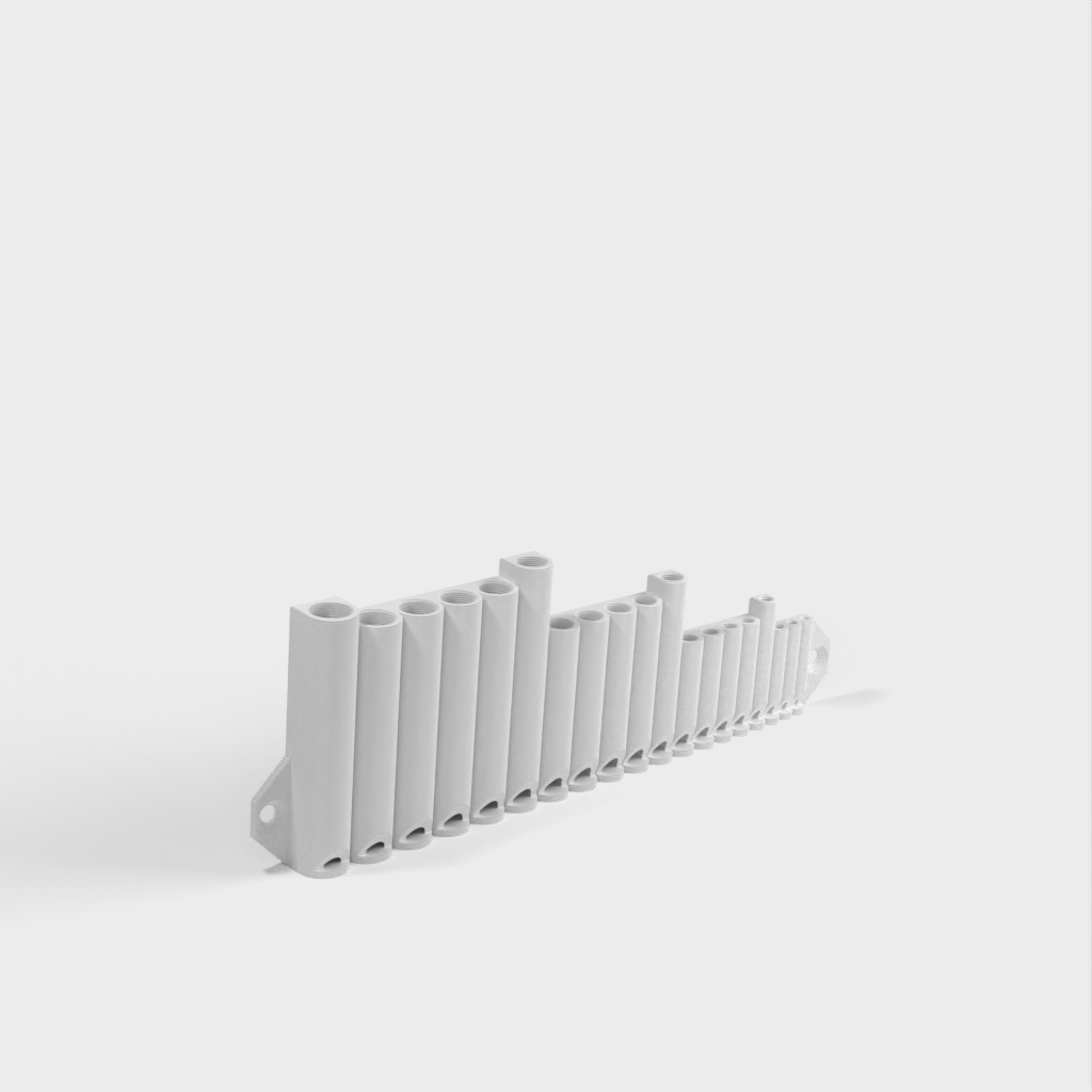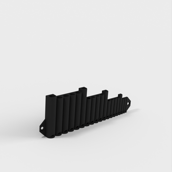 Tämä kompakti poranteränpidike voidaan joko asentaa suoraan seinään tai sijoittaa työkalulaatikkoon. Tällä pidikkeellä voit helposti pitää kirjaa poranteristäsi, joiden halkaisija on 1–10 mm, 0,5 mm:n välein (esim. 1,5 mm, 2 mm, 2,5 mm jne.). Poranterien reiät, joiden koko on 2,5 mm, 5,0 mm, 7,5 mm ja 10 mm, on korotettu, joten ne on helpompi tunnistaa. Poranteränpidike on helppo asentaa 2 ruuvilla.