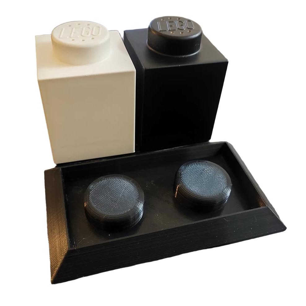 Pidike Lego-suola- ja pippurimyllylle. Pidike on käytännöllinen ja tyylikäs, ja se luo järjestystä pöydälle. Se on suunniteltu tavallisille Lego-suola- ja pippurimyllyille, mikä tekee ruokailukokemuksestasi entistä leikkisämmän ja värikkäämmän.