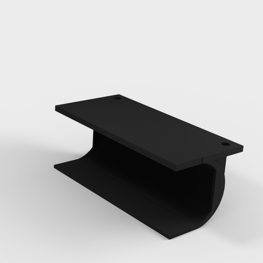 Tukeva ja helppo asentaa työpöydän alle, tämä kiinnike kiinnittää keskittimesi ja auttaa poistamaan kaapelisotkun työtilastasi.