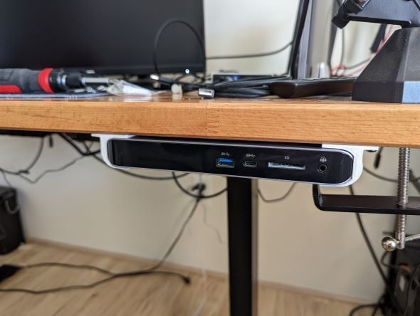 Belkin Pro USB-C -keskitin pöytäkiinnikkeen alla