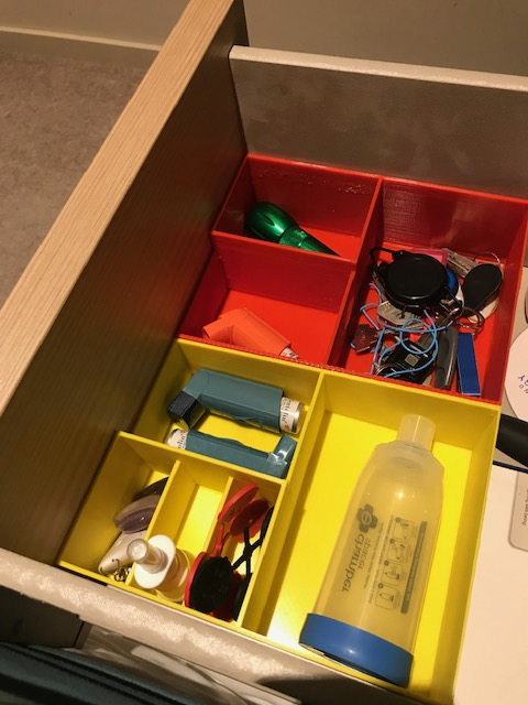 EDIT: Lisäsimme 27.5.2020 kaksi uutta mallia - yksinkertaisella väliseinällä varustetun tarjottimen ja pitkän osan, jos nämä sopivat paremmin tarpeisiisi. Olen tulostanut vain "pitkän" version, joka tuli hienosti, mutta en ole tulostanut "yhden" osion versiota.