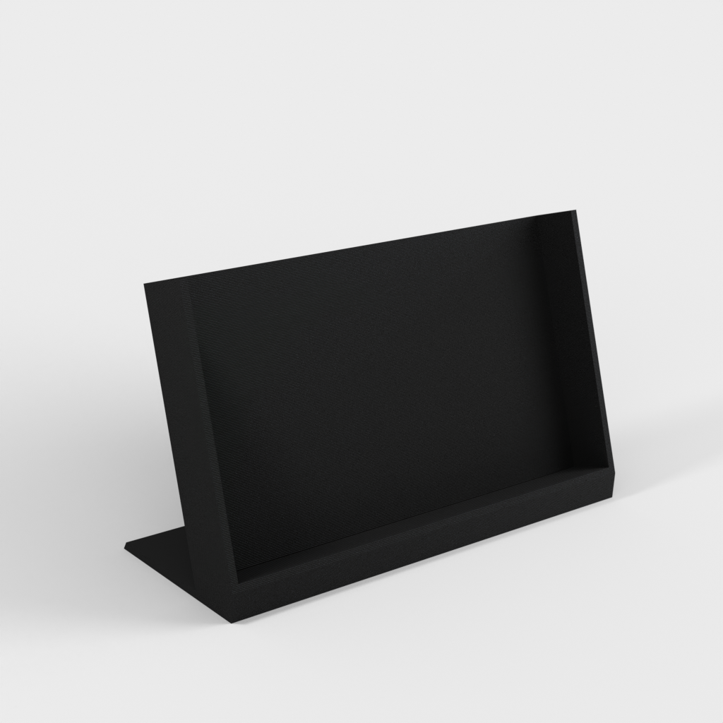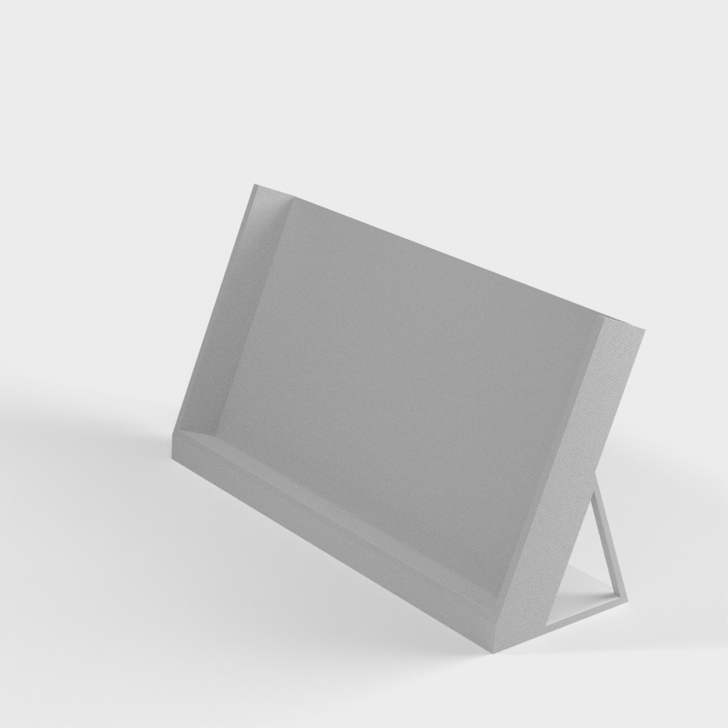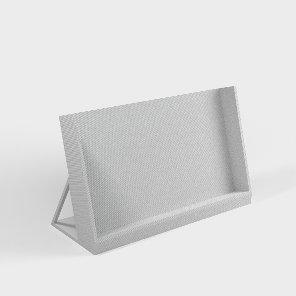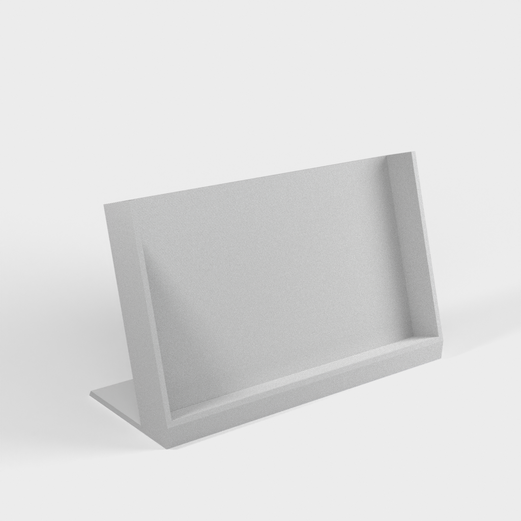 Yksinkertainen käyntikorttiteline vakiokokoisille käyntikorteille. Tämä malli sopii täydellisesti hieman paksummille käyntikorteille ja siihen mahtuu vaivattomasti 10 korttia. Käyntikorttitelinettä on saatavana kahtena versiona, toinen tukijaloilla ja toinen ilman (tukijalat toimivat vain visuaalisena yksityiskohtana). Pohjassa on pienet syvennykset kumitulppia varten, jotta teline ei luista pöydällä.
