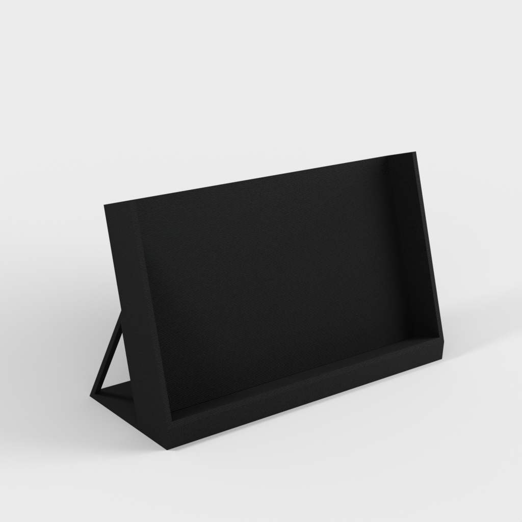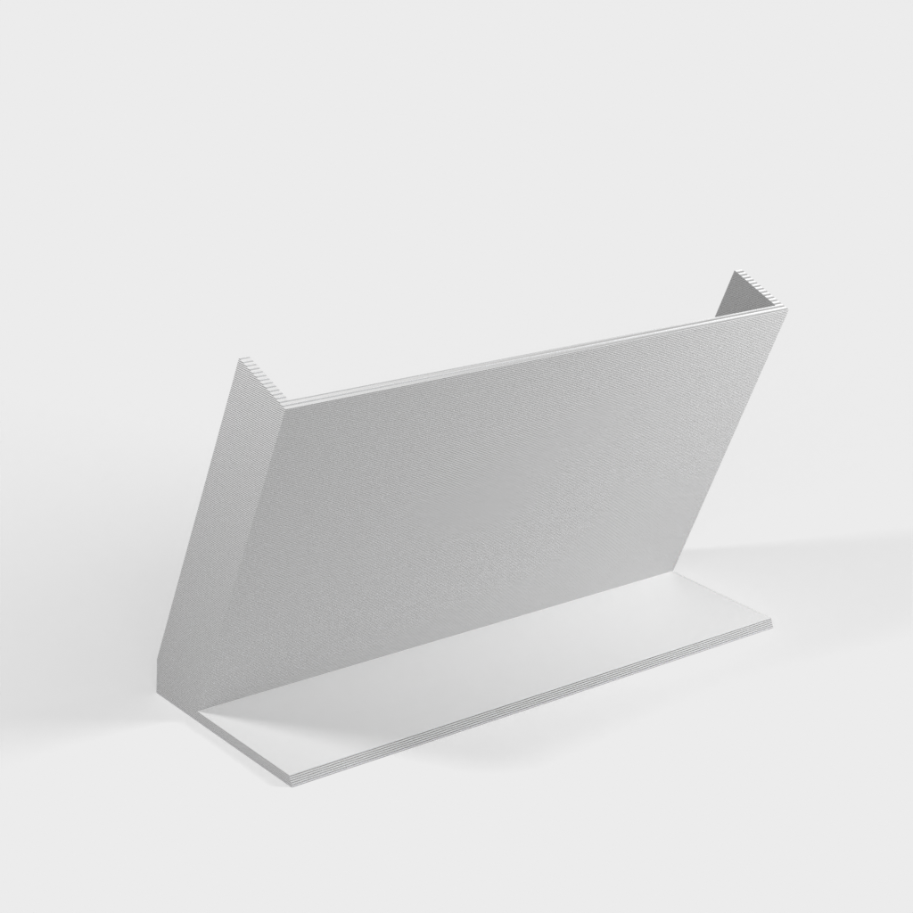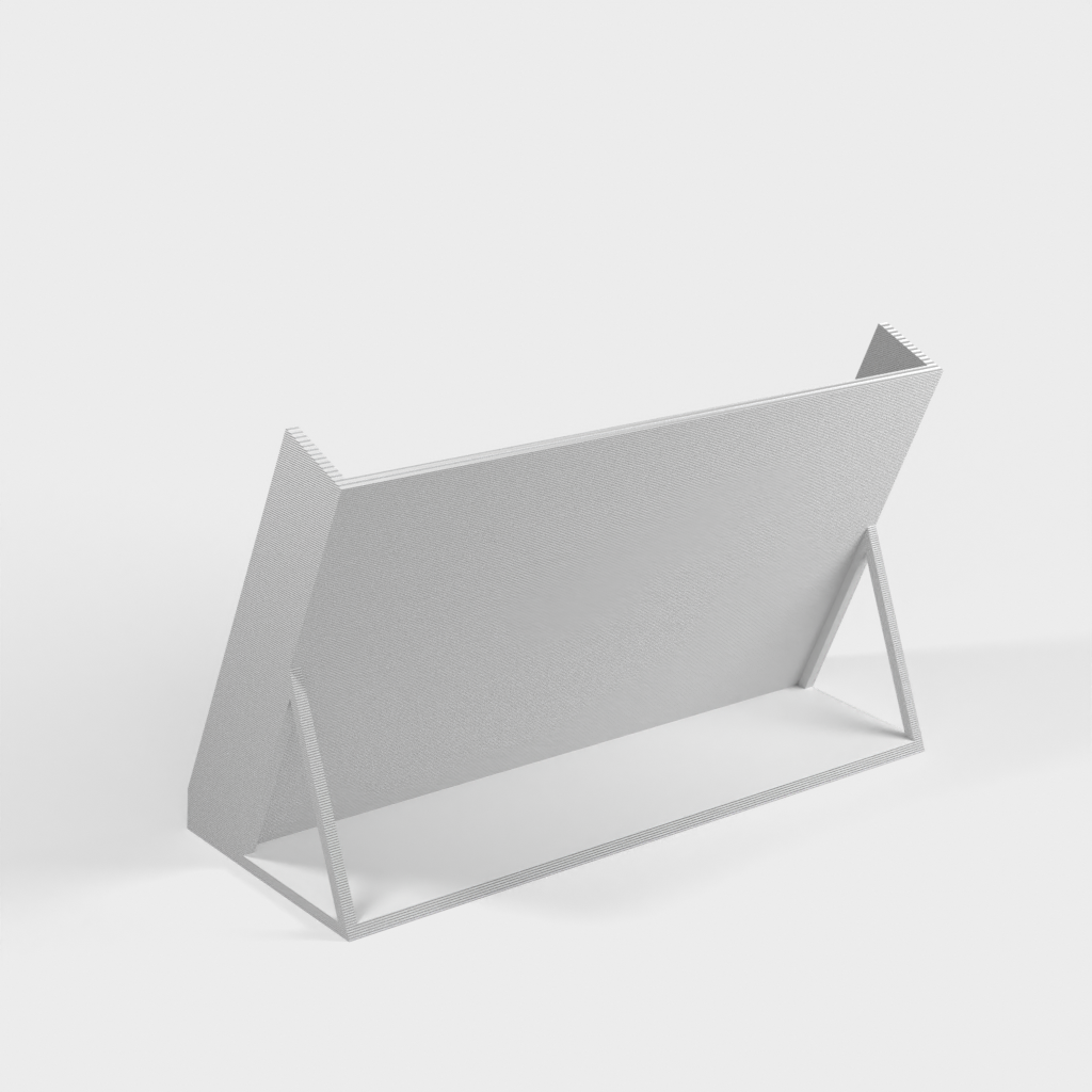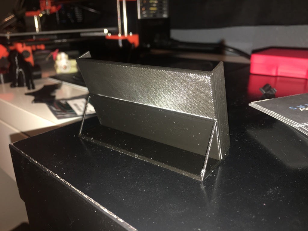 Yksinkertainen käyntikorttiteline vakiokokoisille käyntikorteille. Tämä malli sopii täydellisesti hieman paksummille käyntikorteille ja siihen mahtuu vaivattomasti 10 korttia. Käyntikorttitelinettä on saatavana kahtena versiona, toinen tukijaloilla ja toinen ilman (tukijalat toimivat vain visuaalisena yksityiskohtana). Pohjassa on pienet syvennykset kumitulppia varten, jotta teline ei luista pöydällä.