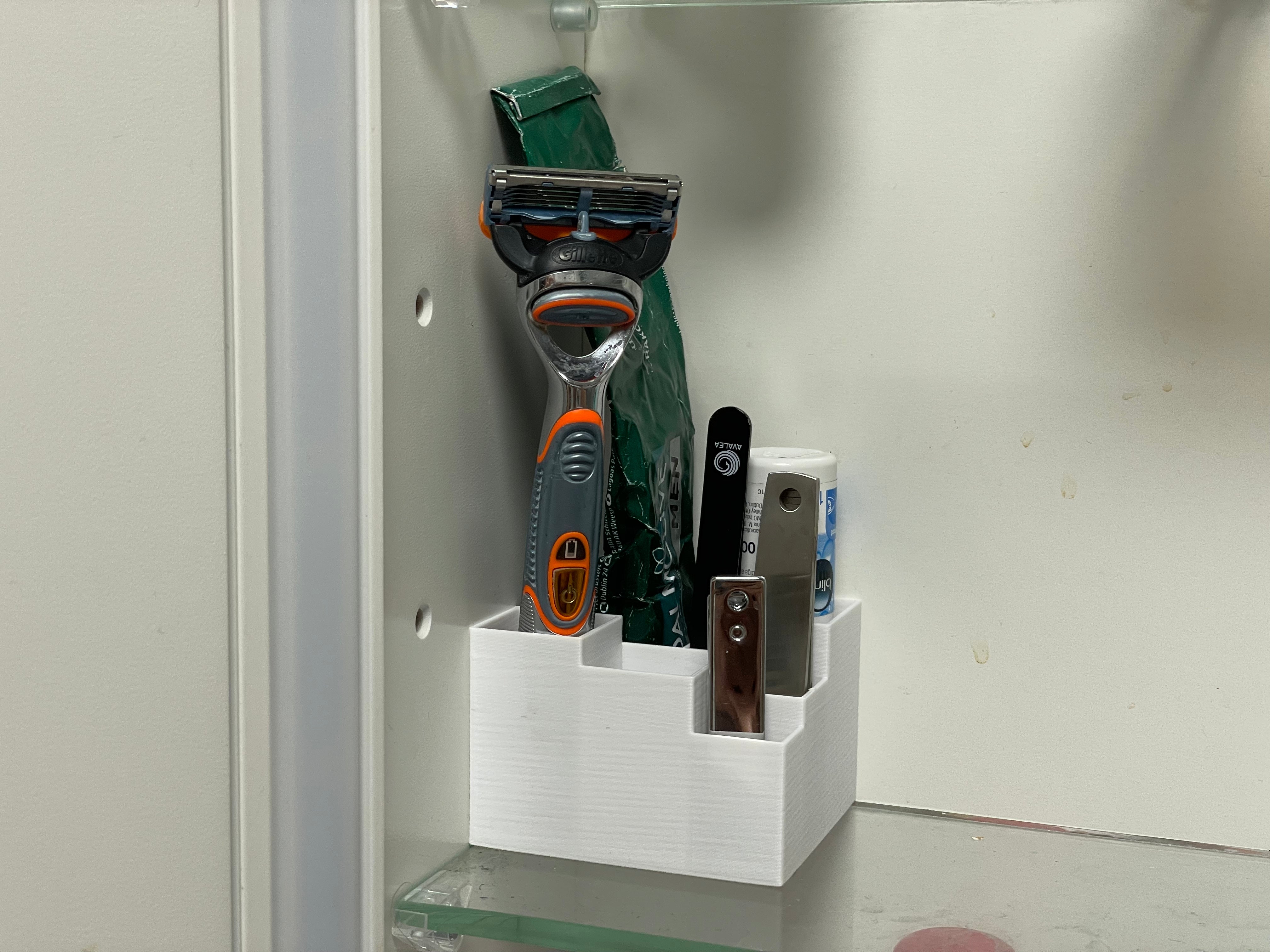 Kylpyhuonekaapin järjestelijä, joka sopii erinomaisesti hygieniatuotteiden, meikkien ja muiden pienten tavaroiden järjestämiseen. Helppo asentaa kylpyhuoneen seinälle ja sitä voidaan käyttää järjestyksen ja vapaiden pintojen ylläpitämiseen.