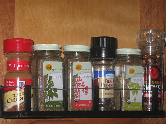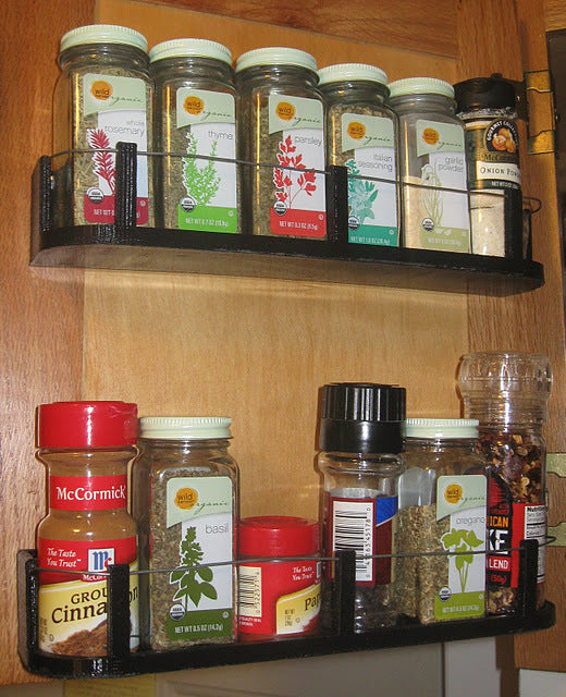 Tämä on maustehylly, joka on suunniteltu ruuvattavaksi keittiöni kaapinoviin. Siihen mahtuu erilaisia mausteita ja ne ovat helposti saatavilla ruoanlaiton aikana. Ihanteellinen keittiökaappien järjestämiseen ja maustekokoelmasi järjestyksessä pitämiseen.