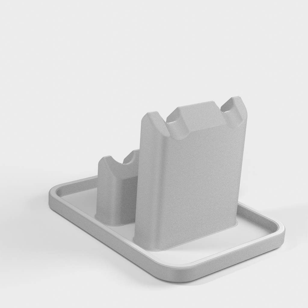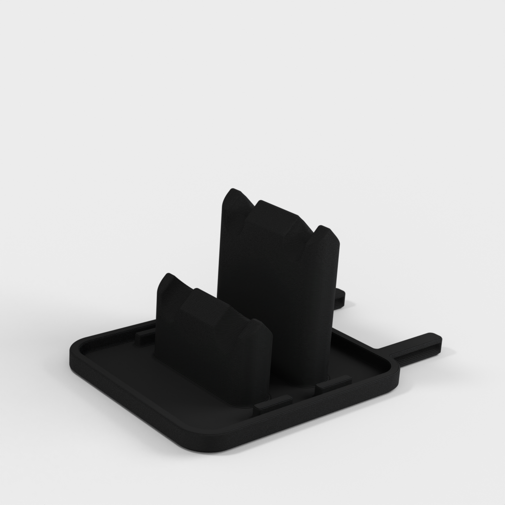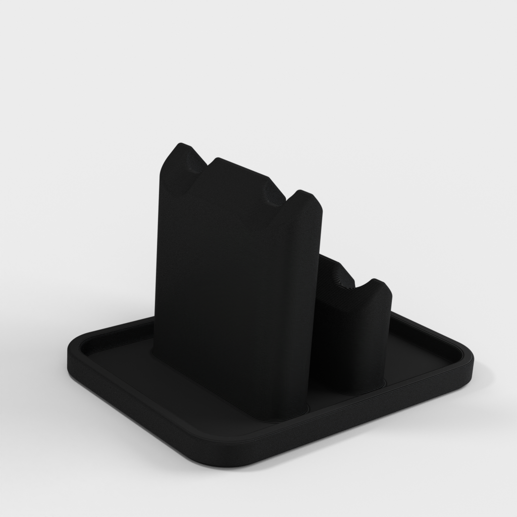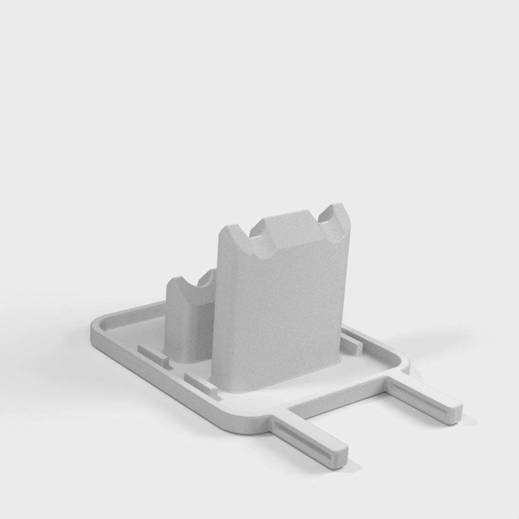 Oral-B-hammasharjateline, jossa hammaslangan pidike ja paikka peilihyllylle