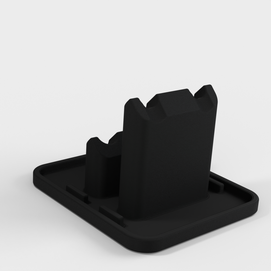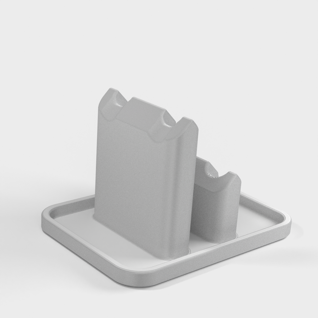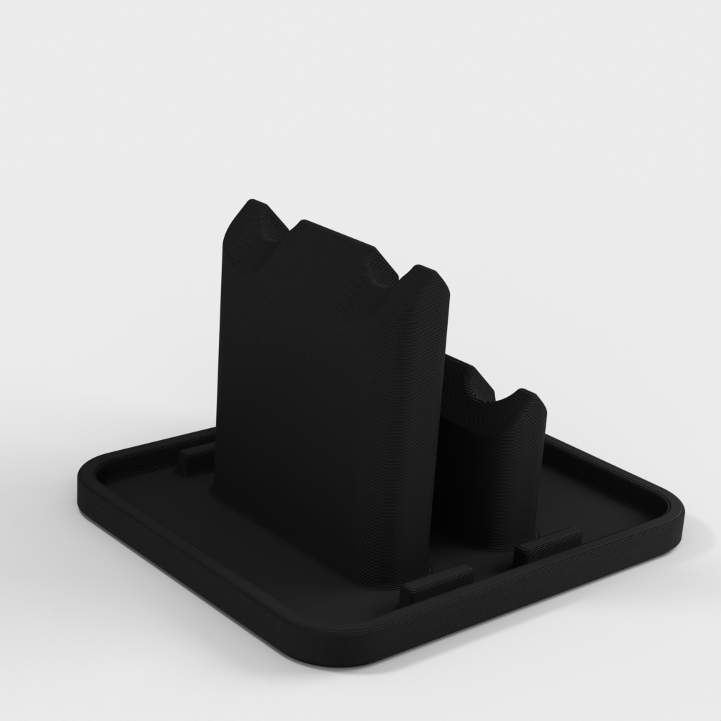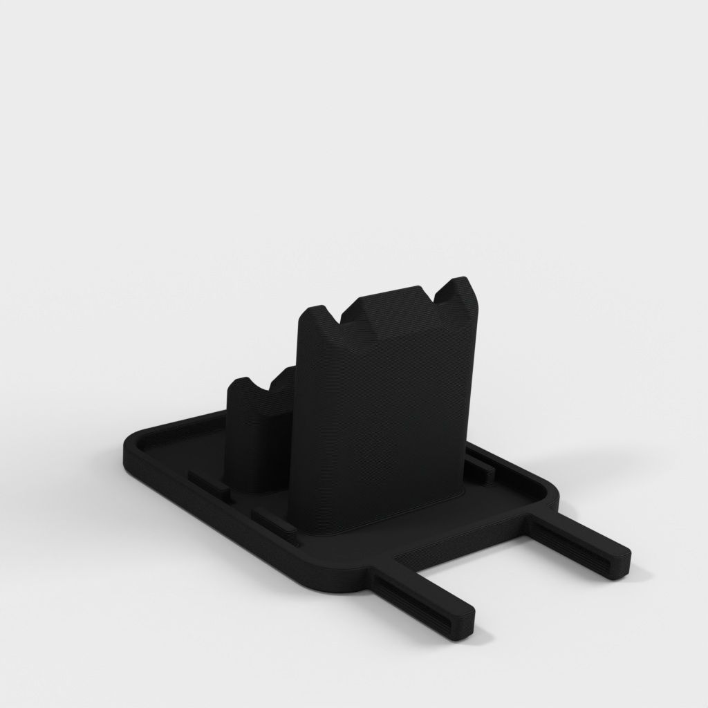 Oral-B-hammasharjateline, jossa hammaslangan pidike ja paikka peilihyllylle