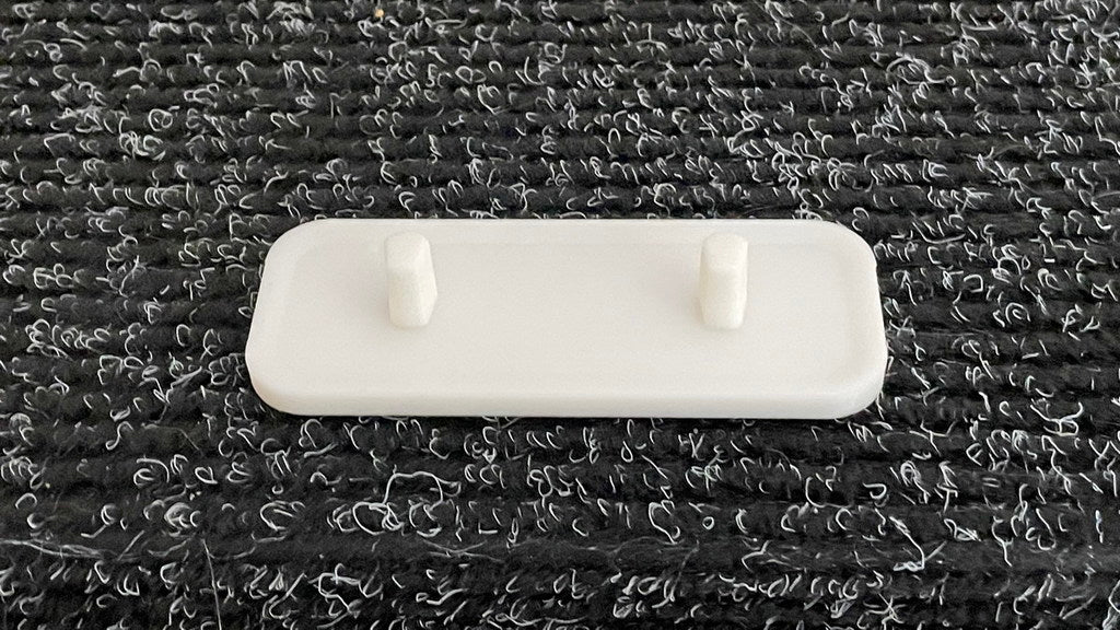 Yksinkertainen hammasharjateline kahdelle Oral-B-hammasharjalle, jossa pieni syvennys, jotta ylimääräinen vesi jää pidikkeeseen.