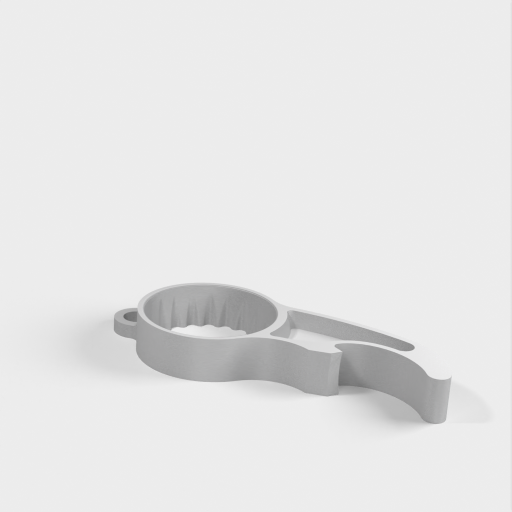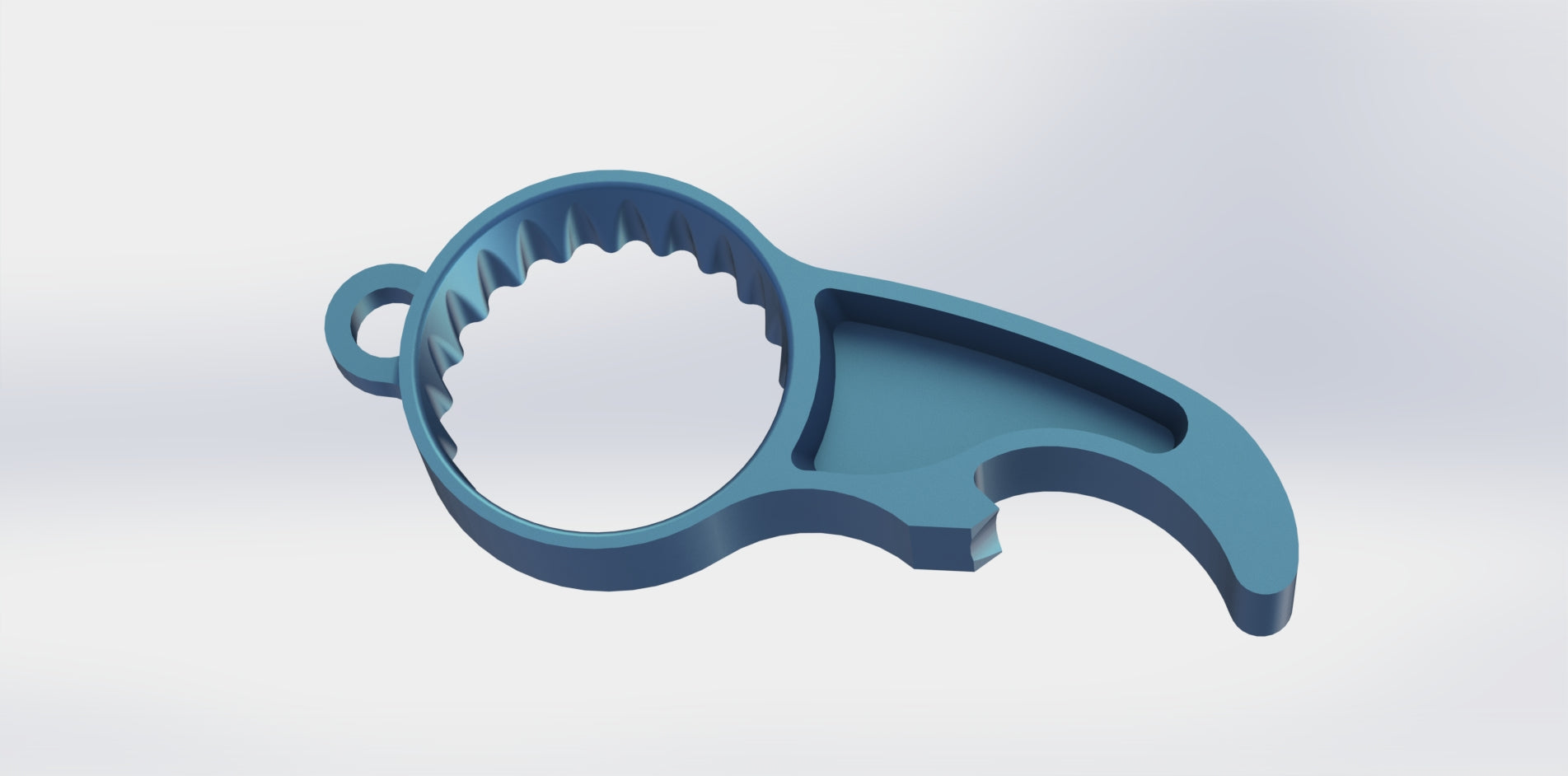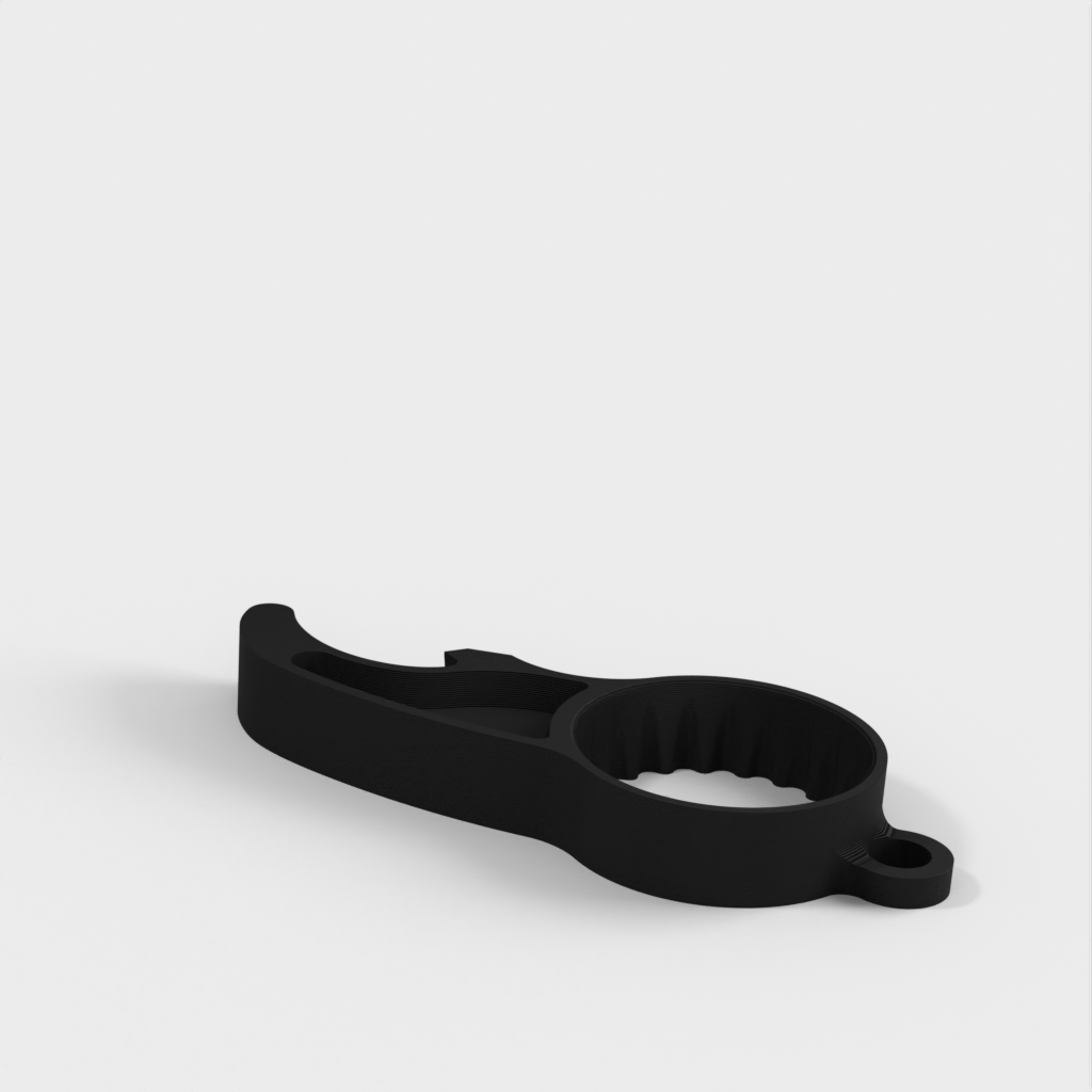 Yksinkertainen pullonavaaja, joka sopii sekä kierre- että pry-top-pulloille. Voit kiinnittää tuotteen helposti avaimenperään pienen silmukan avulla.