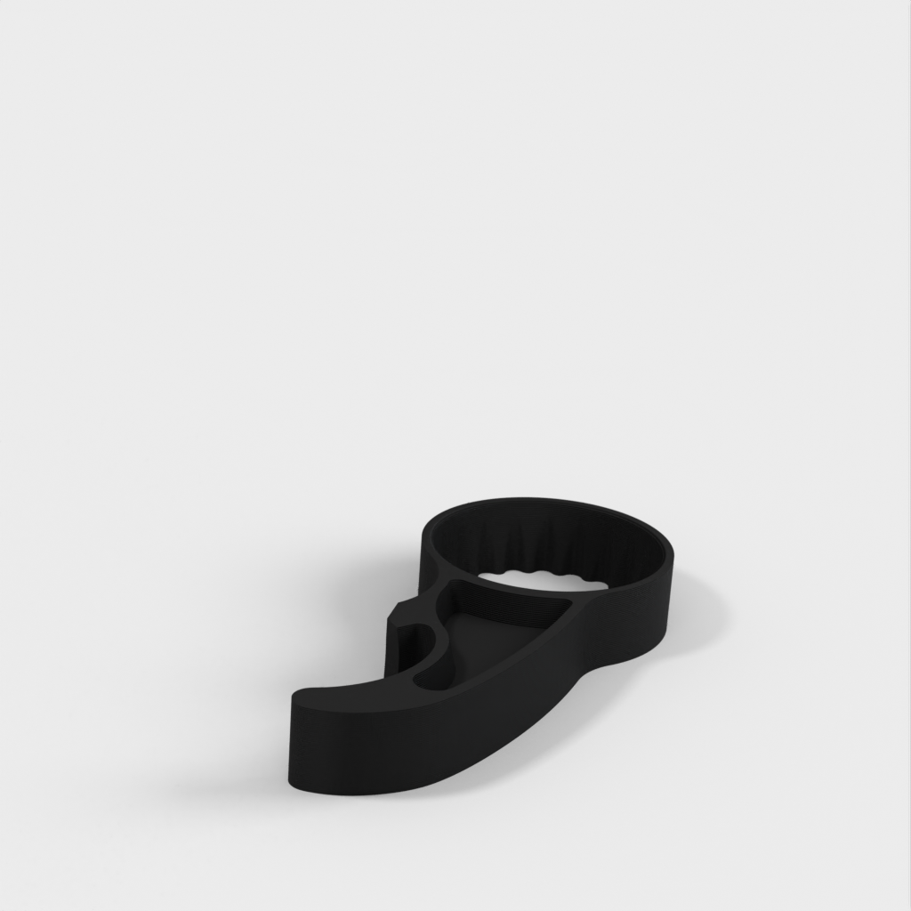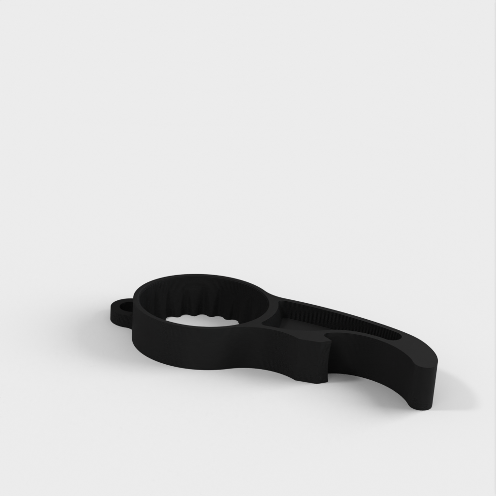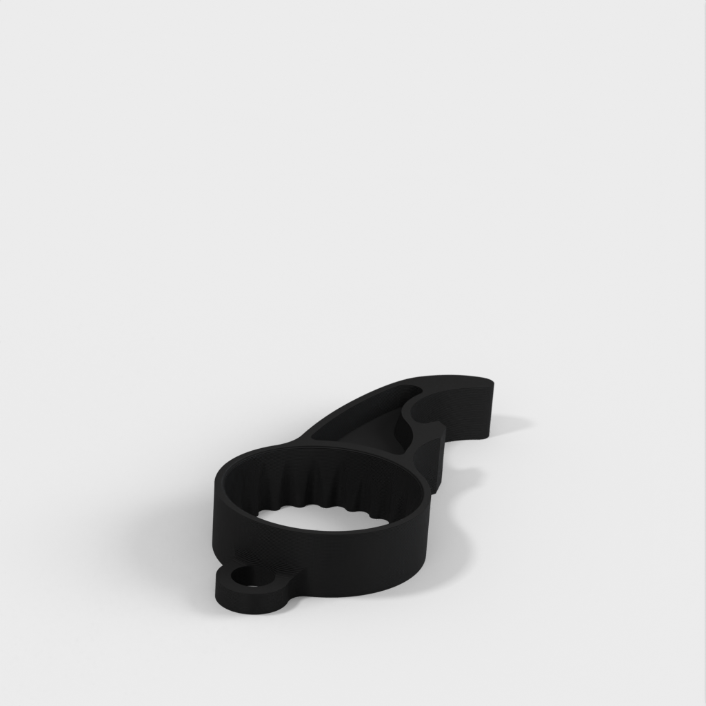 Yksinkertainen pullonavaaja, joka sopii sekä kierre- että pry-top-pulloille. Voit kiinnittää tuotteen helposti avaimenperään pienen silmukan avulla.