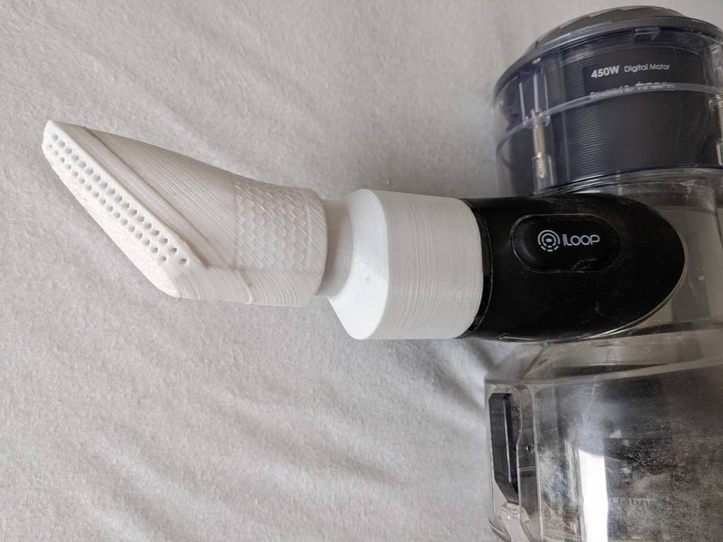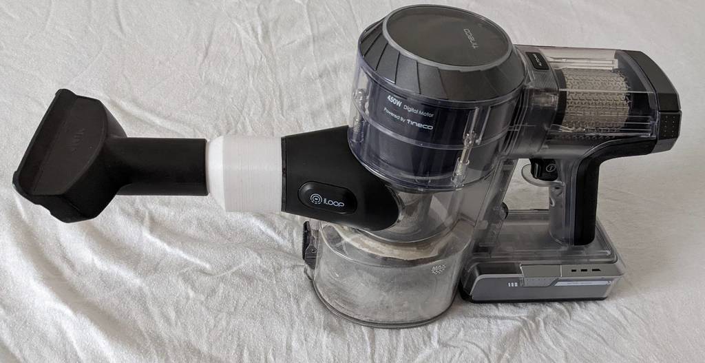 Tällä adapterilla voit käyttää Mielelle ja vastaaville pölynimureille tehtyjä suuttimia ja muita lisävarusteita Tineco-johdottomassa pölynimurissasi. Se tukee kaikkia lisävarusteita, joissa on 35 mm:n akseliliitin, mukaan lukien upeat 3D4U-mallit. Viimeisessä kuvassa näkyy arvoesineiden erotin asennettuna Tineco S11 -malliin.