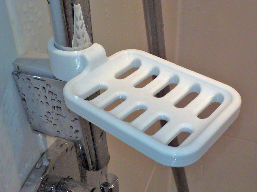 Turvallinen ja säädettävä saippuateline suihkutankoon