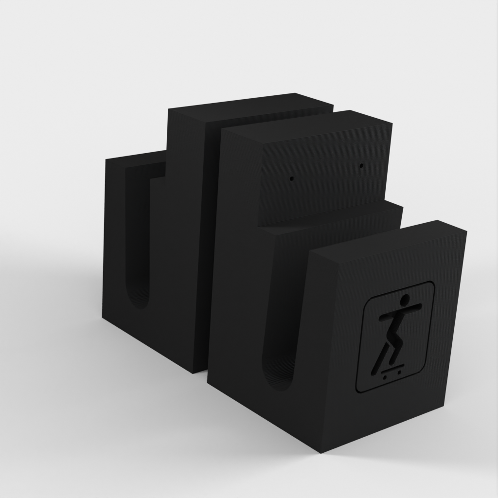 Seinäteline skeittilaudalle, jossa on kaksi ruuvinreikää, jotta skeittisettisi olisi järjestelmällisempi ja säästät tilaa. Siinä on 24 mm:n aukko, joka sopii useimpiin skeittilaudoihin. Helppo asentaa seinään, mikä tekee siitä ihanteellisen sekä tavallisille skeittilaudoille että sähköisille skeittilaudoille.