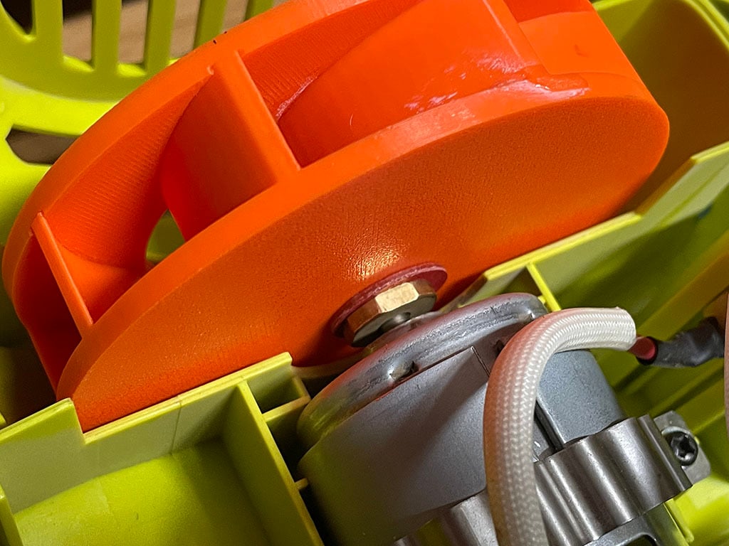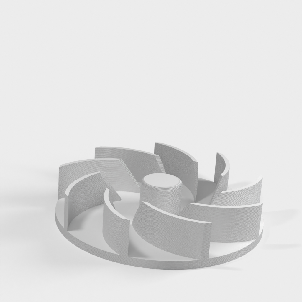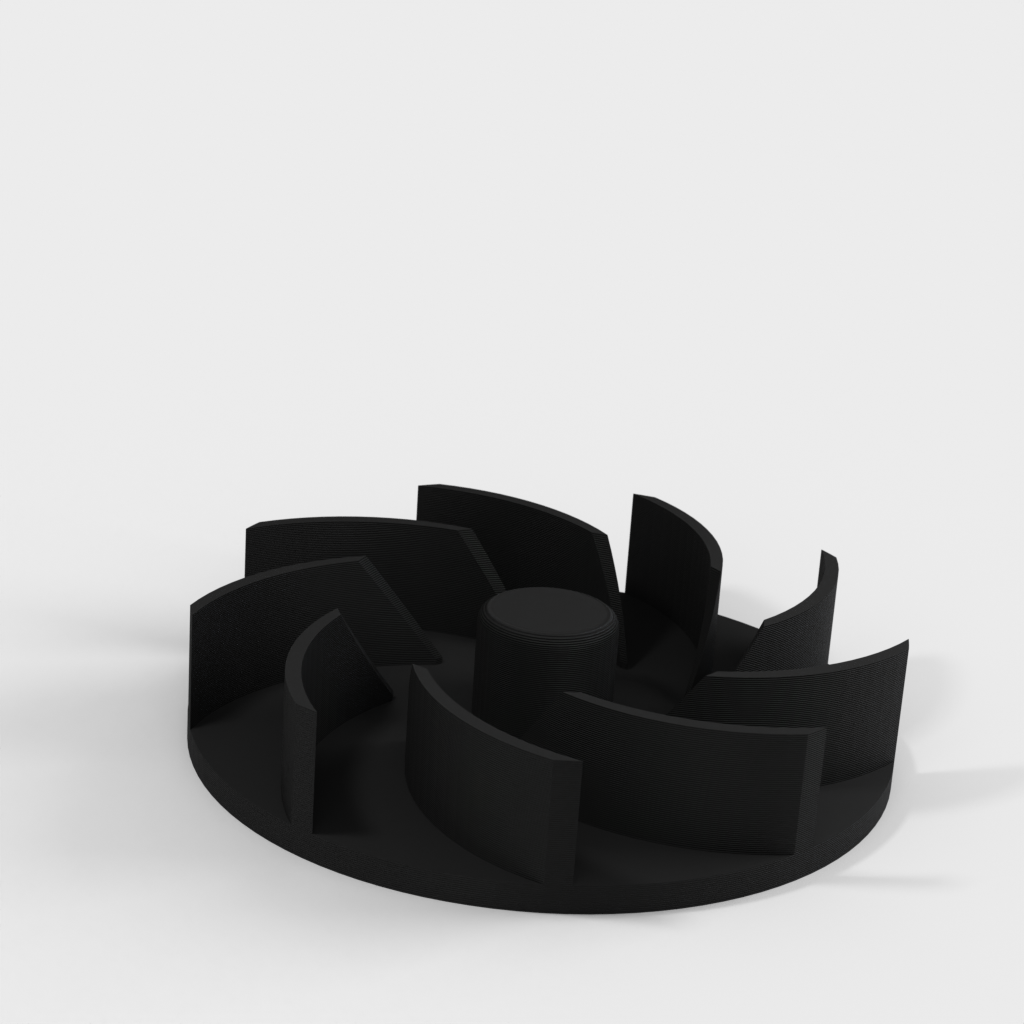 Vaihtoroottori Ryobi RBL1802 -lehtipuhaltimelle. Kaksiosaisen rakenteen ansiosta rikkoutuneen roottorin vaihtaminen on helppoa ja varmistaa, että työkalusi toimii jälleen optimaalisesti. Moottorin akseliin asennettaessa on suositeltavaa käyttää hieman teflonteippiä ja kuitulevyä, jotta varmistetaan oikea etäisyys moottorista ja tiukka istuvuus.