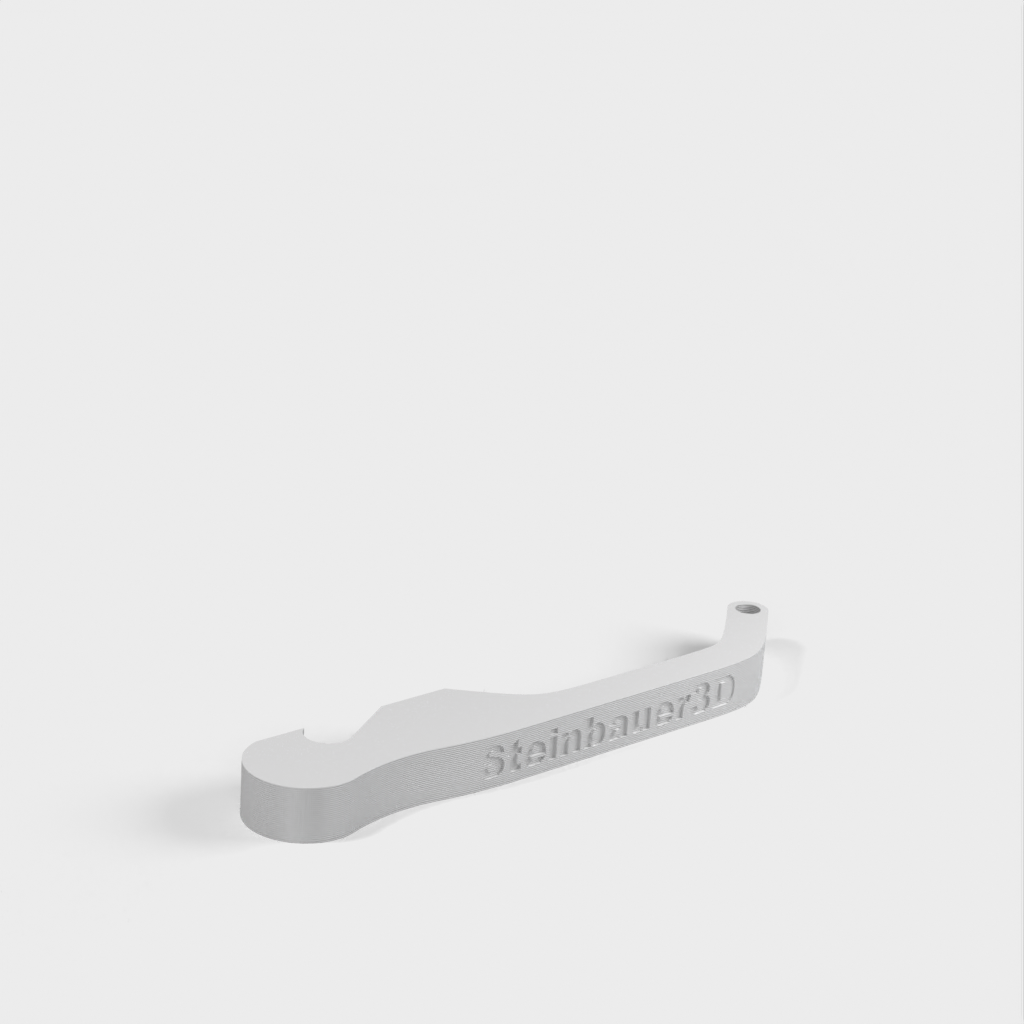 Yksinkertainen oluenavaaja PLA-materiaalista. Tässä pullonavaajassa on 0,4 mm:n suutin, 200/60 °C:n lämpötila, 0,3 mm:n kerros, 10 kehää ja 40 %:n täyte. Tämä antaa pullonavaajalle tarvittavan lujuuden ja kestävyyden olutpullojen avaamiseen.