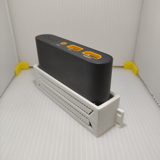 Yksinkertainen seinäkiinnike HTC VIVE Link Boxille. Kiinnitys mahdollistaa vapaan pääsyn kaikkiin sisäänkäynteihin.