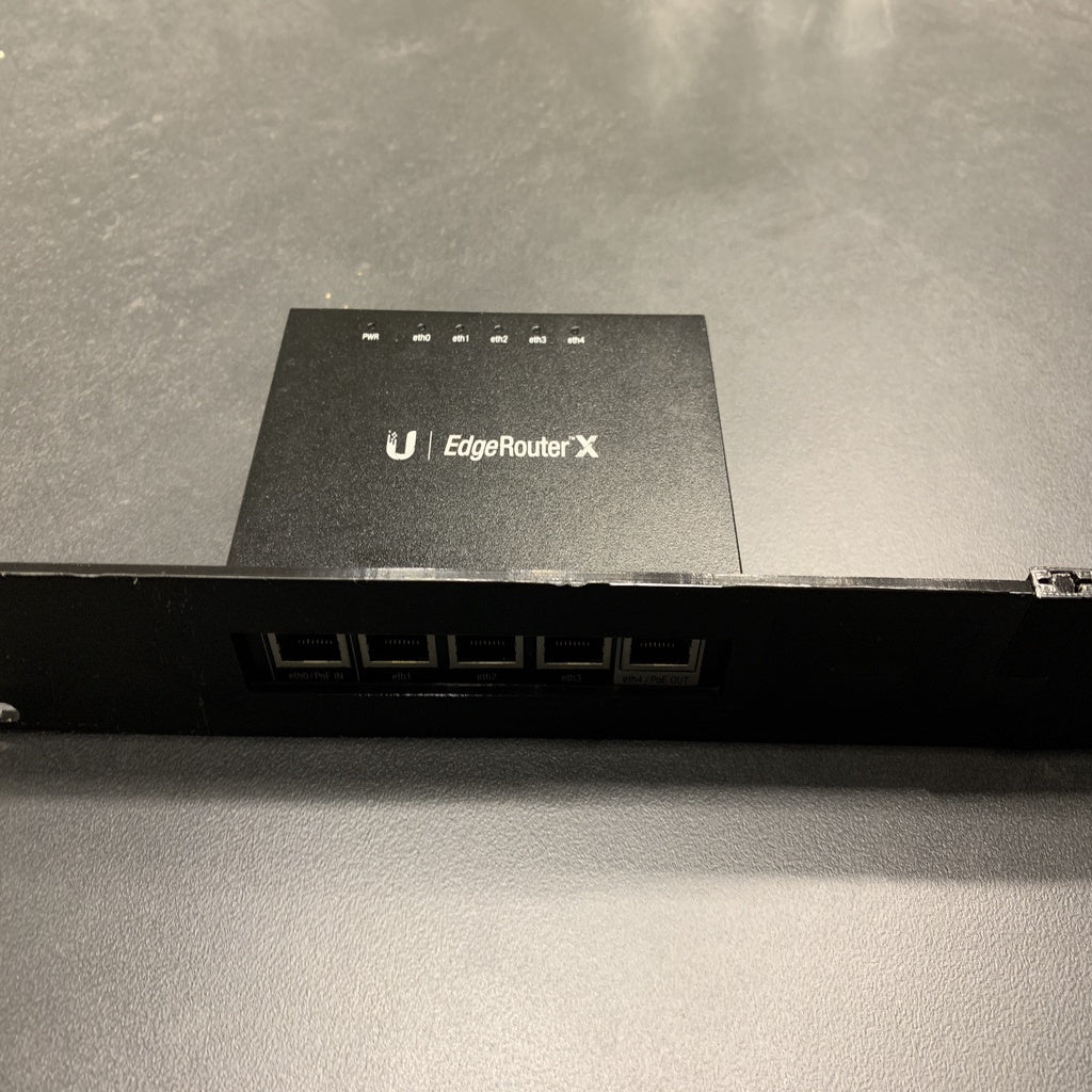 2-osainen 1U-teline Ubiquiti EdgeRouter X:lle.