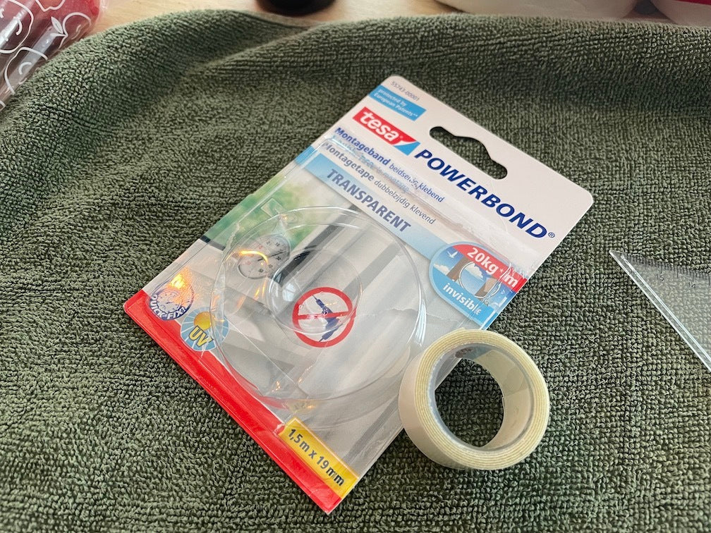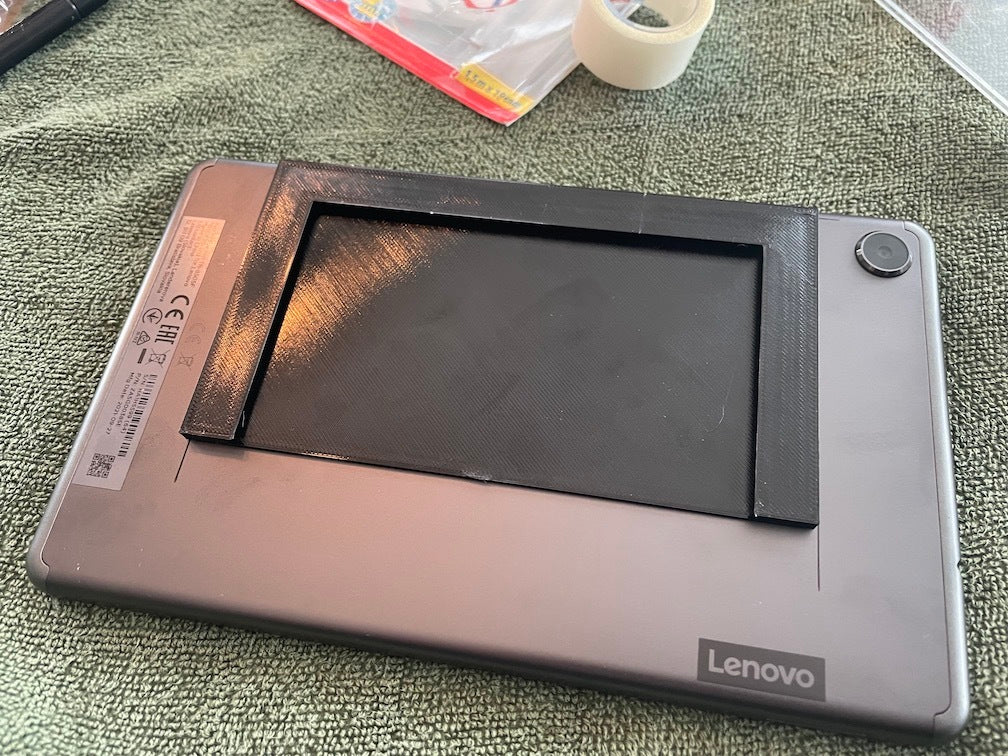 - Kræver anvendelse af stærk dobbeltklæbende tape (som Tesa Powerbond) til fastgørelse på bagsiden af tabletten.