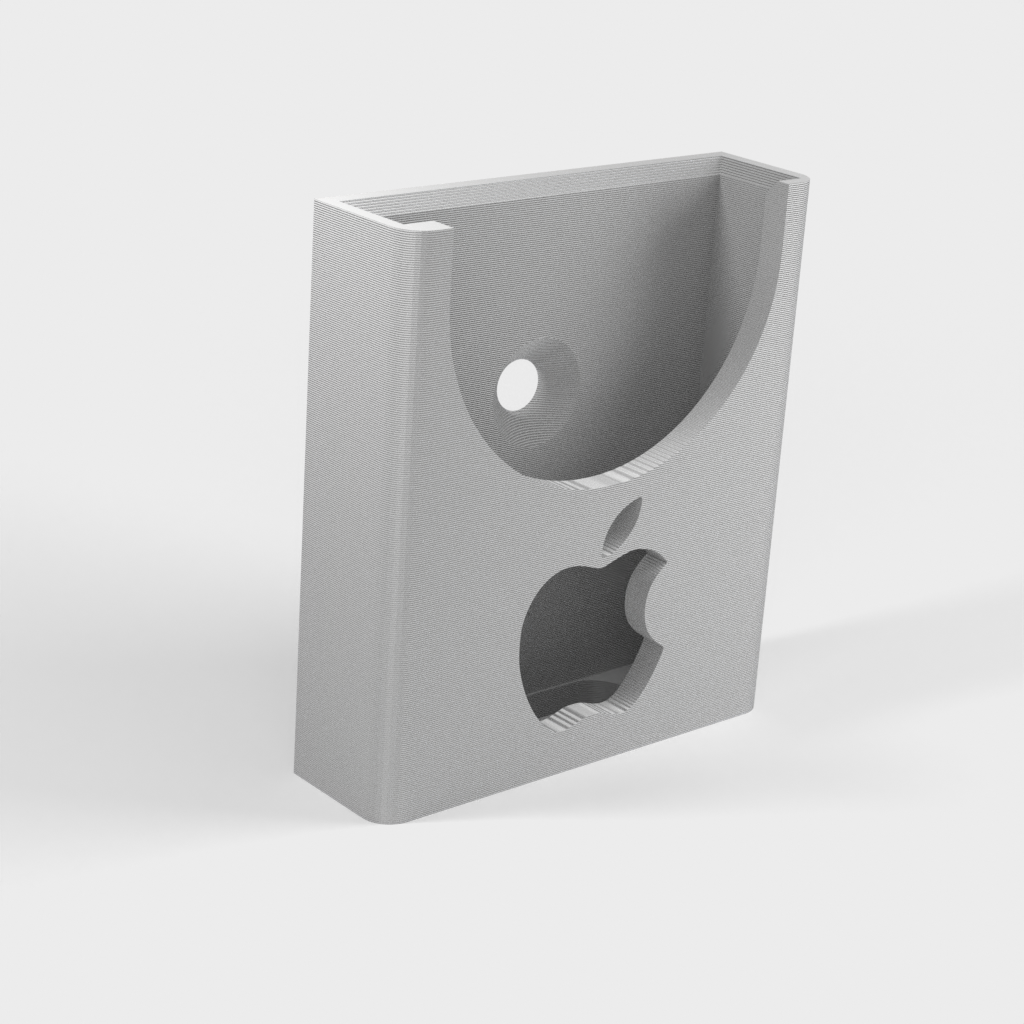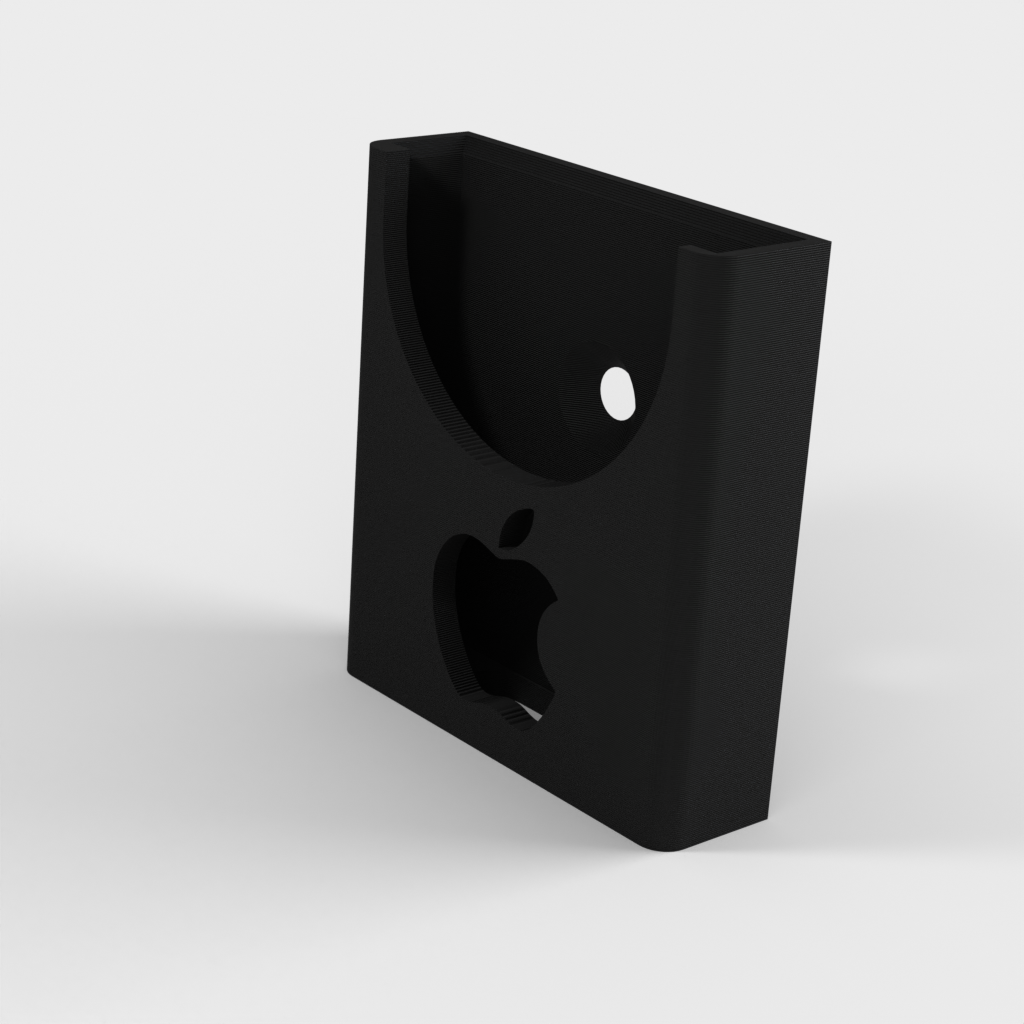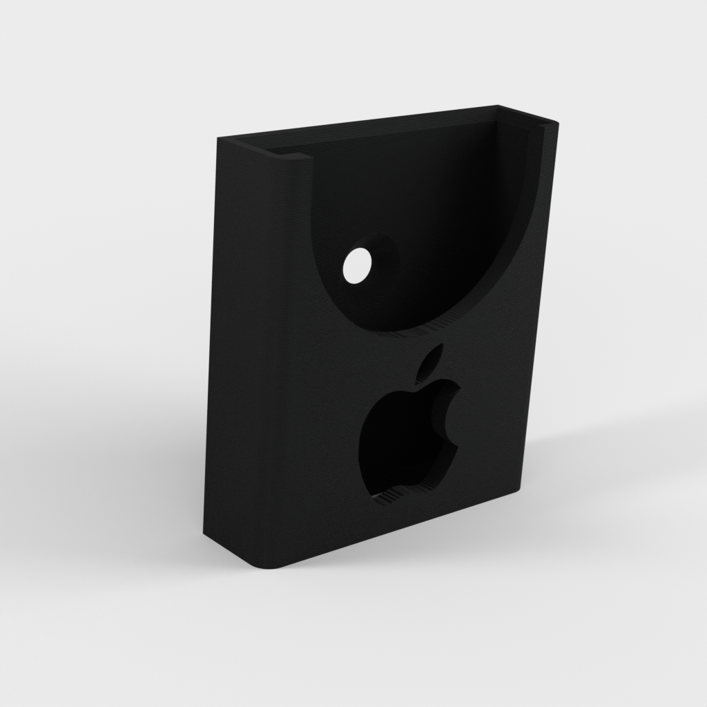 Apple TV -kaukosäätimen pidike käytettäväksi "Seri Remoten" kanssa. Se antaa sinulle 0,02 tuuman välyksen edessä ja takana. Pohjassa on myös aukko latauskaapelia varten. Tämä pidike varmistaa, että kaukosäädin on aina yhdessä paikassa, joten et koskaan menetä sitä enää. Se on helppo kiinnittää seinään, ja sen pienikokoinen muotoilu tarkoittaa, että se ei vie paljon tilaa.