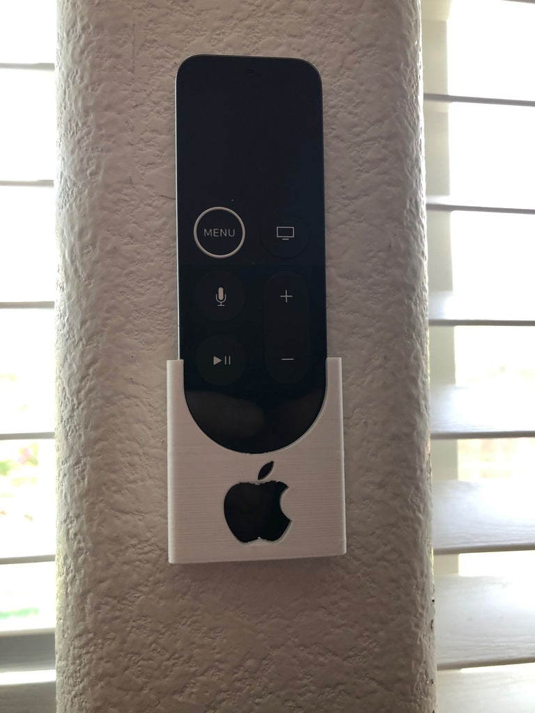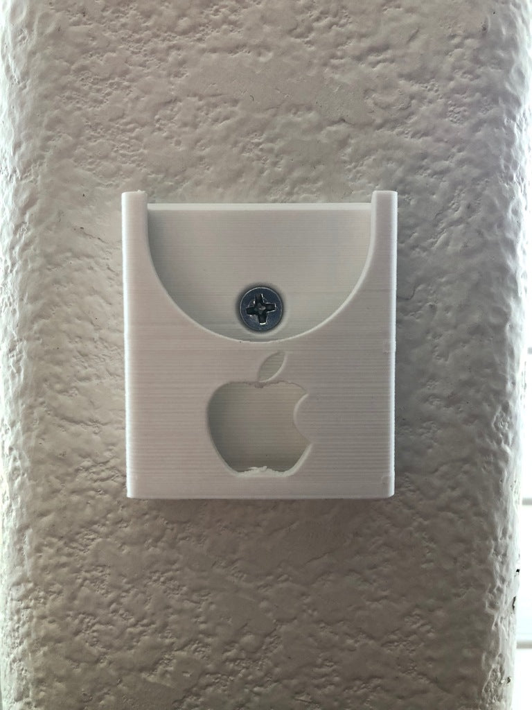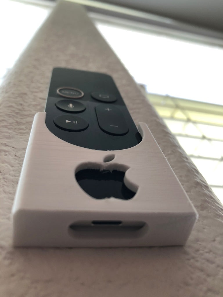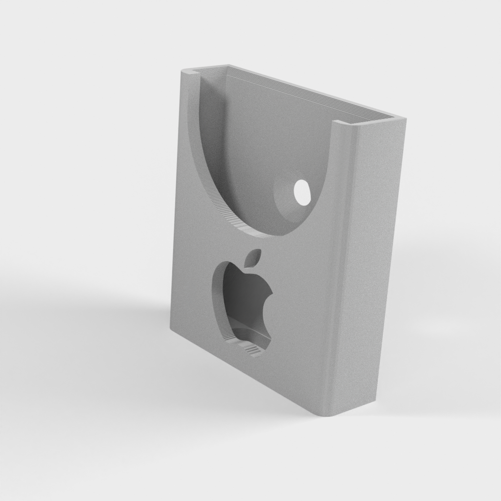 Apple TV -kaukosäätimen pidike käytettäväksi "Seri Remoten" kanssa. Se antaa sinulle 0,02 tuuman välyksen edessä ja takana. Pohjassa on myös aukko latauskaapelia varten. Tämä pidike varmistaa, että kaukosäädin on aina yhdessä paikassa, joten et koskaan menetä sitä enää. Se on helppo kiinnittää seinään, ja sen pienikokoinen muotoilu tarkoittaa, että se ei vie paljon tilaa.