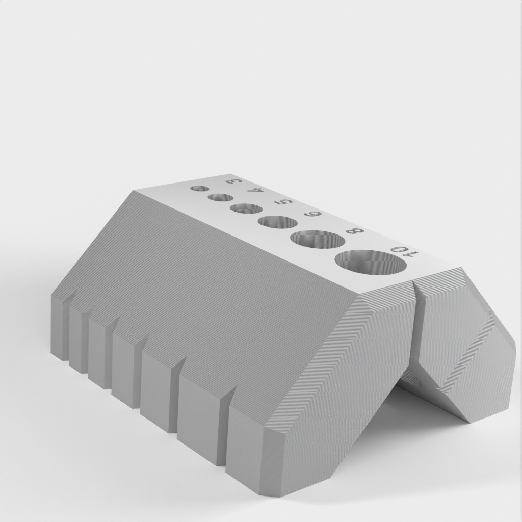 90 ja 45 asteen poraohjain, jossa tangot, reunat ja sivut 2 cm