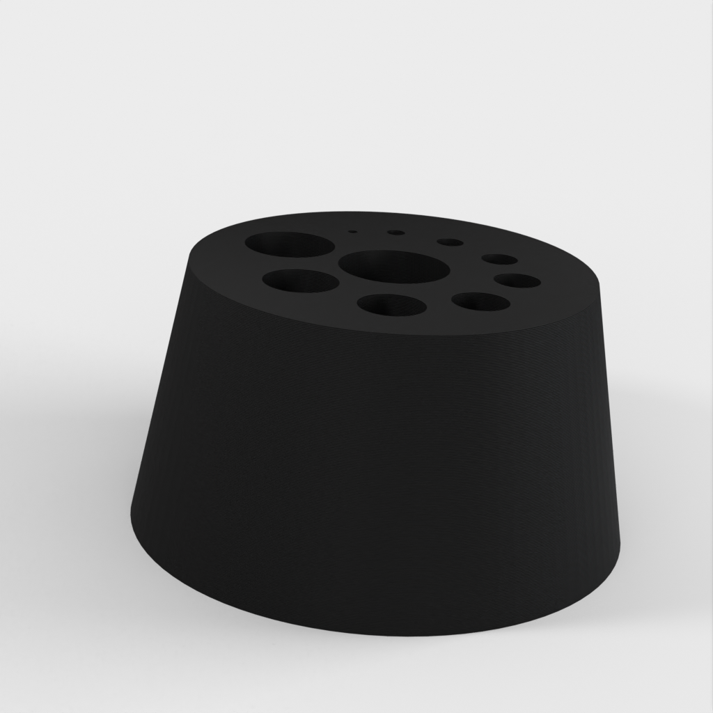 Tämä on poraohjain tarkkojen 90 asteen reikien poraamiseen tasaista pintaa vasten. Se soveltuu 1, 2, 3, 4, 6, 8, 10 ja 12 mm:n reikiin. Tämän oppaan avulla voit porata helposti ja nopeasti tarkalla tarkkuudella.