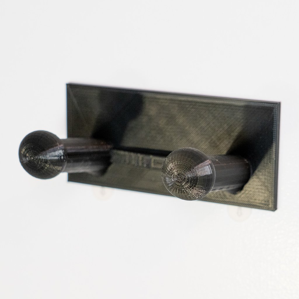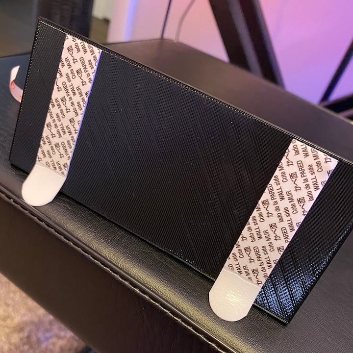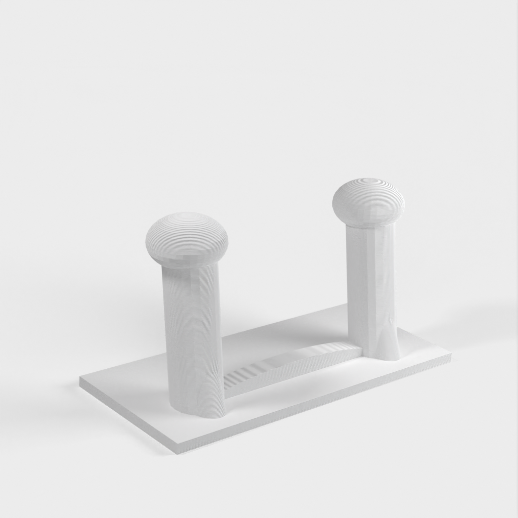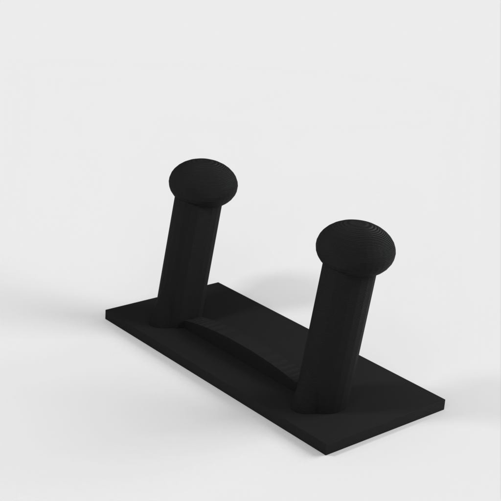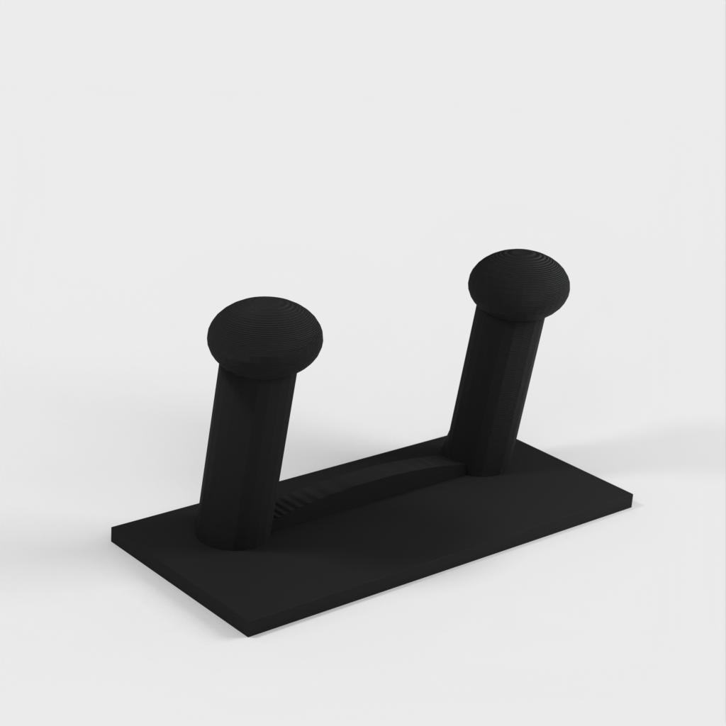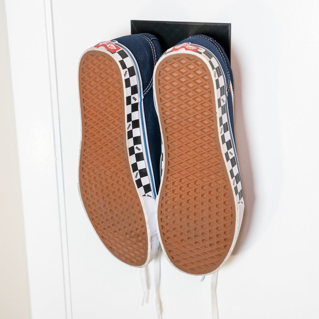 Kengähylly seinälle. Kengähylly voidaan asentaa suoraan seinään tai oveen kaksipuolisen teipin avulla, mikä tekee siitä irrotettavan. Se on tehty niin, että teipissä olevat ripustimet roikkuvat hieman kengähyllyn alapuolella, jotta ne voidaan tarvittaessa poistaa.