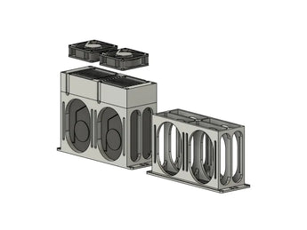 • Fås i varianter, der tillader placering af ventilatoren enten indeni eller uden på boksen.