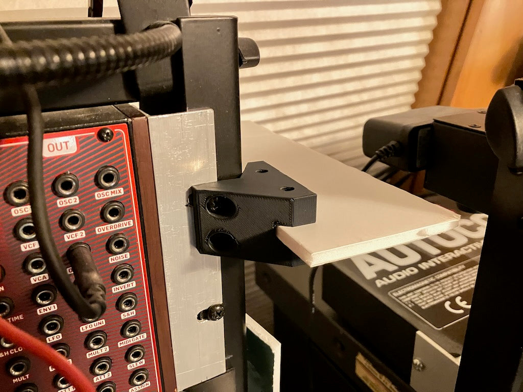Litteän materiaalihyllyn kiinnittämiseen voit käyttää liimaa, ruuveja tai yksinkertaisesti porata materiaaliin reikiä kannattimessa olevan kuvion mukaisesti ja asettaa noin 5 mm:n vahvuiset paalut tappeina. Hyllymateriaalisi leveyden tulisi olla noin 428mm 19' telineelle, mutta telineet ovat tunnetusti vaihtelevia, joten mittaa sen jälkeen, kun olet asentanut kiinnikkeet tai leikkaa pidemmäksi ja leikkaa tarvittaessa.