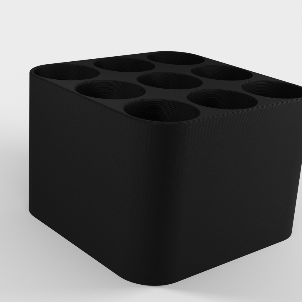 Aa-paristojen pidike, joka on suunniteltu pitämään paristot helposti paikallaan. Tämä käytännöllinen ja kestävä pidike helpottaa AA-paristojen järjestämistä ja säilyttämistä. Täydellinen työtiloihin, työpajoihin tai toimistotiloihin, joissa tarvitaan AA-paristojen saatavuutta.