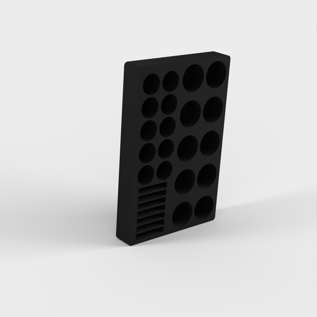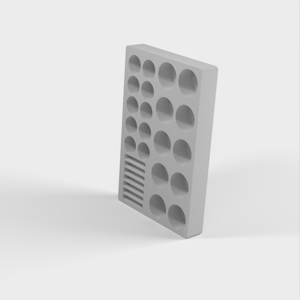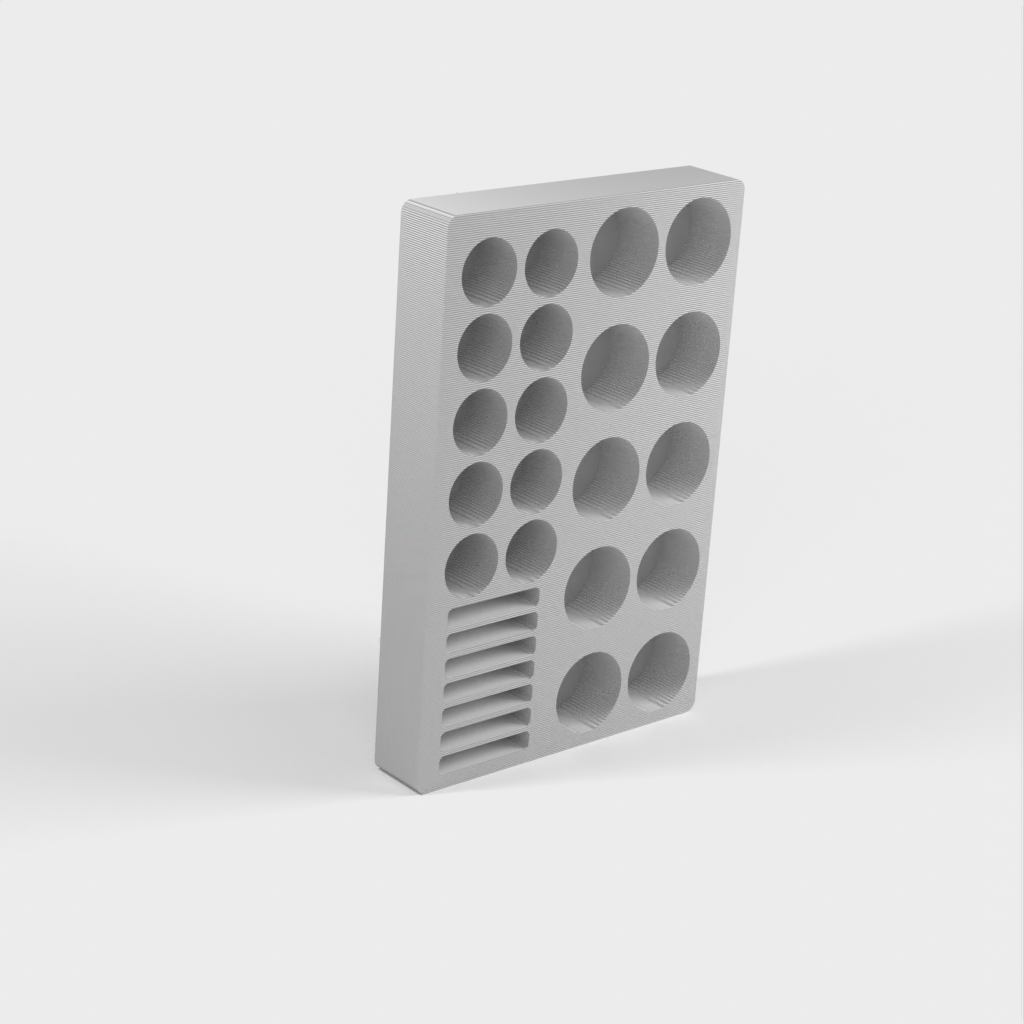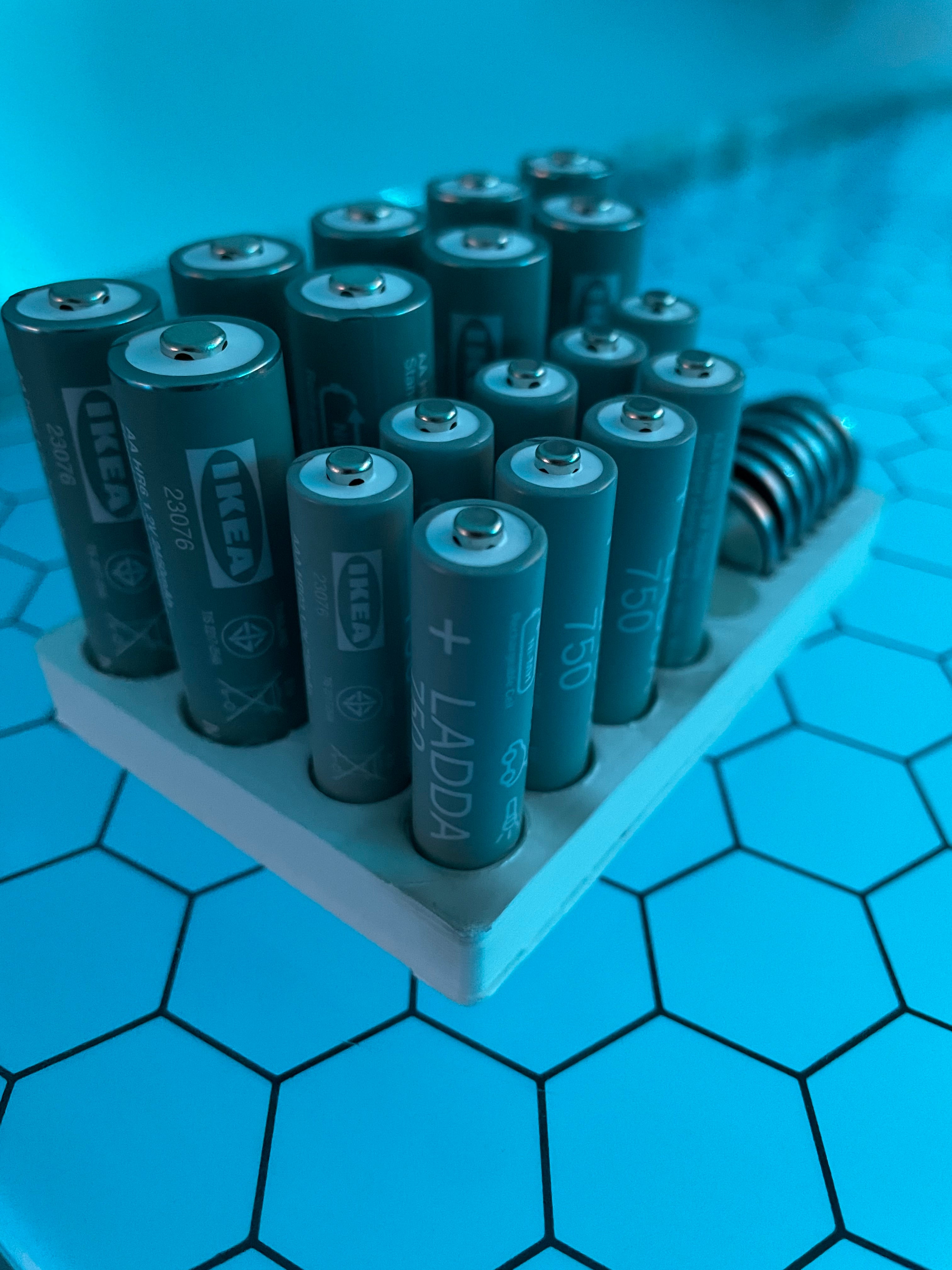 Paristoteline erityisesti AA-, AAA- ja CR2032-paristoille. Se on suunniteltu erityisesti IKEA Ladda -paristoille, mutta se sopii myös muiden merkkien paristoille, kunhan ne eivät ole ohuempia kuin normaalikokoiset paristot. Pidikkeeseen mahtuu 10 AA-, 10 AAA- ja 7 CR2032-paristoa. Tämä auttaa pitämään paristot järjestyksessä ja helposti saatavilla.